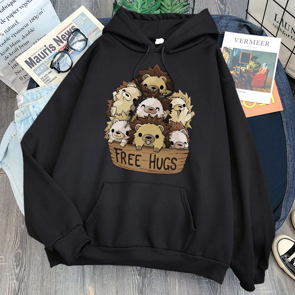 Женская толстовка с капюшоном и принтом медведя для сна на животе, ...
