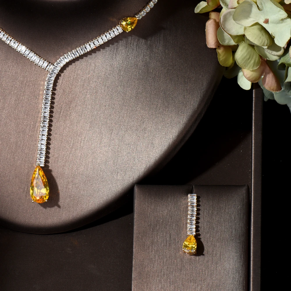 HIBRIDE AAA циркон в форме капли воды ожерелье кулон набор для женщ...