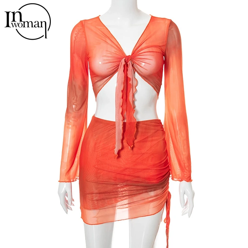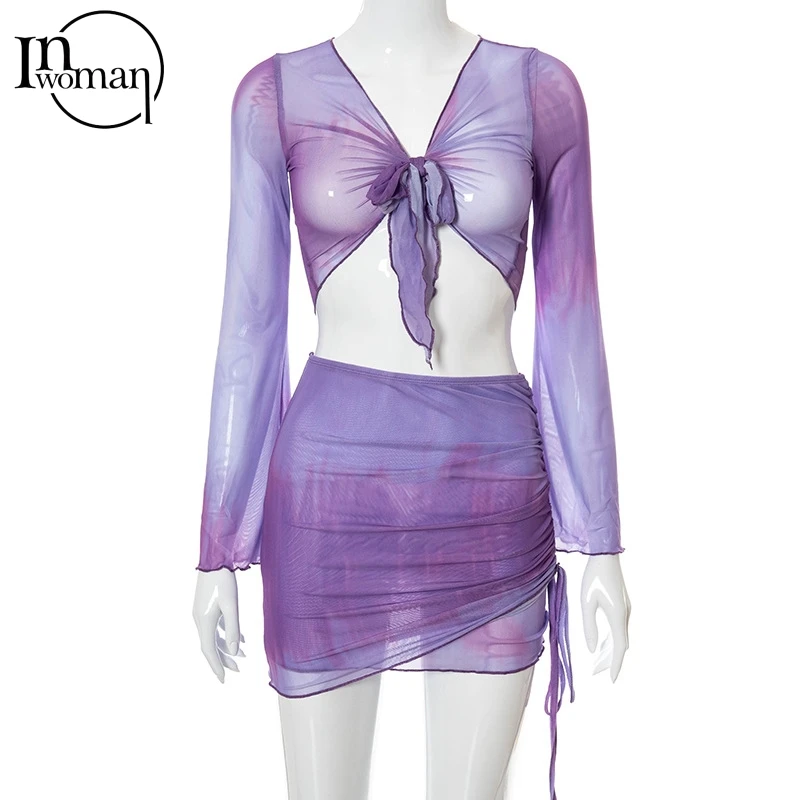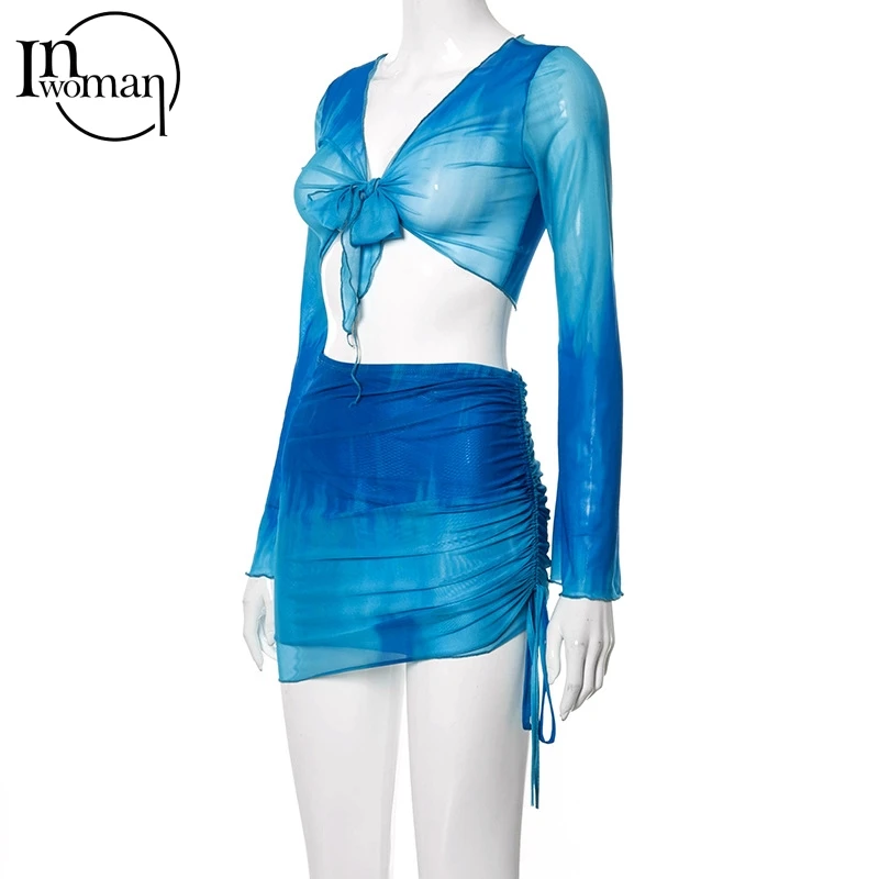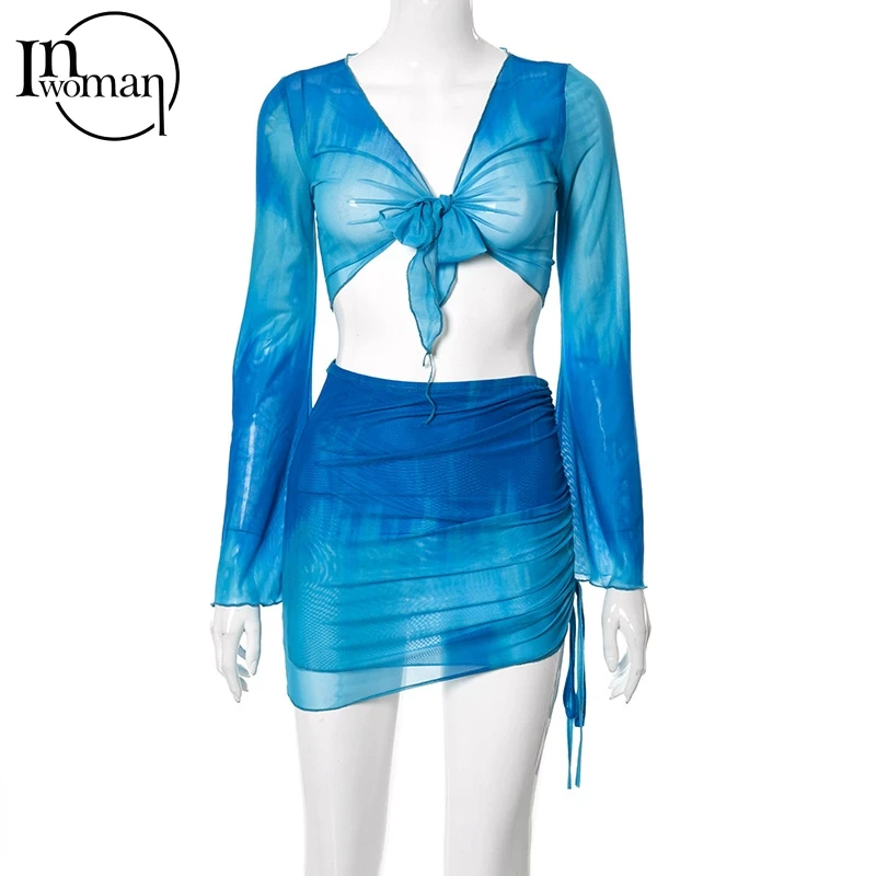 Simenual комплект из 2 предметов: топ и юбка в сеточку с завязками ...
