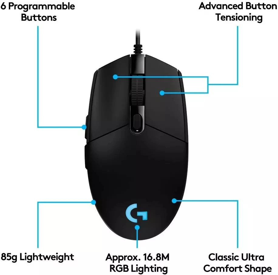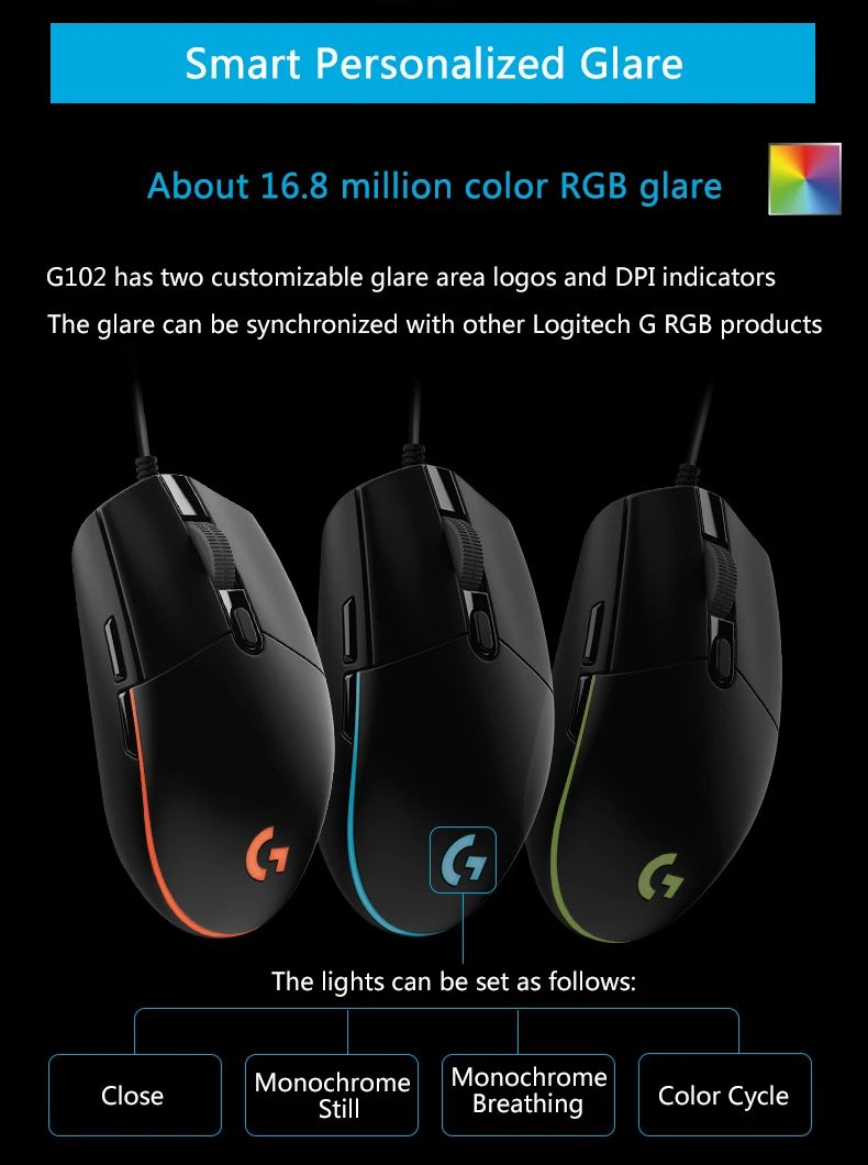 Проводная игровая мышь Logitech G102 LIGHTSYNC/Prodigy 2nd Gen, игровая мышь для настольного компьютера/ноутбука, Windows 10/8/7, оптическая мышь
