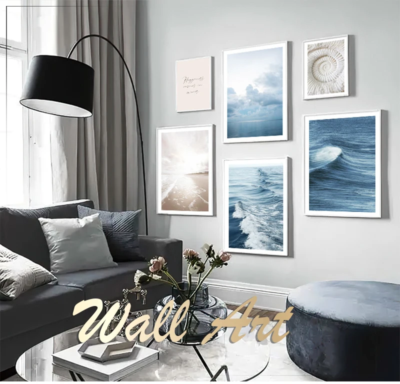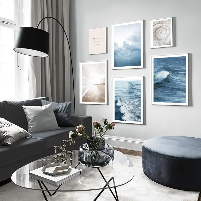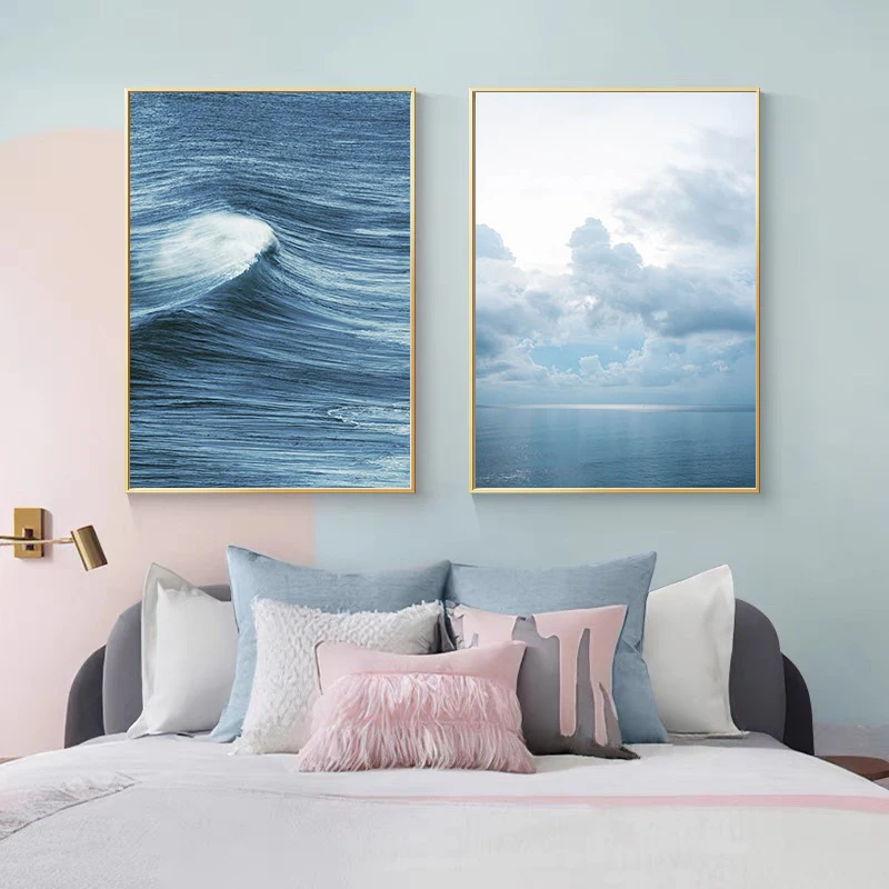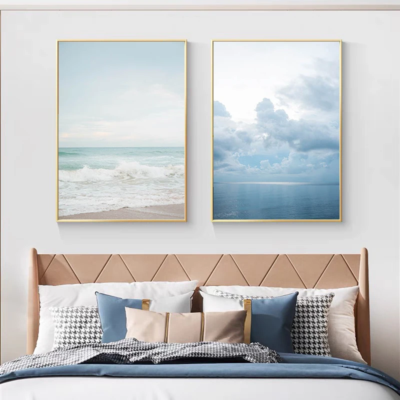 Скандинавский синий дневной пейзаж, холст, живопись, пляж, морской пейзаж, природный плакат, Художественная печать, настенные картины для домашнего декора комнаты