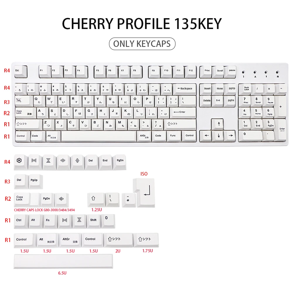 135 клавиши, минималистские белые клавиши PBT, колпачки для клавиш с сублимационной печатью в виде вишневого профиля для механической клавиатуры GK61 K70 G710, клавиши с раскладкой iso