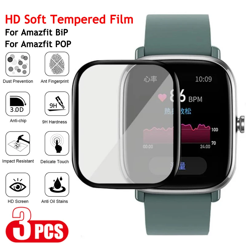 Мягкая HD-пленка из закаленного стекла для HuaMi Amazfit BiP S BiP U Pro, защитная пленка на весь экран для Amazfit GTS 2 2E 2 Mini (не стекло), 3 упаковки