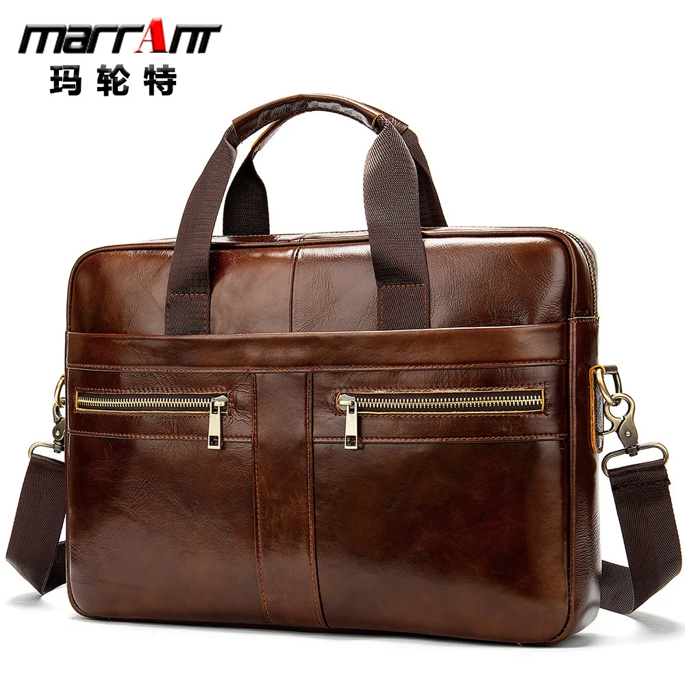 Мужской портфель из натуральной кожи, брендовая кожаная мужская сум...