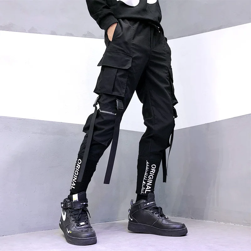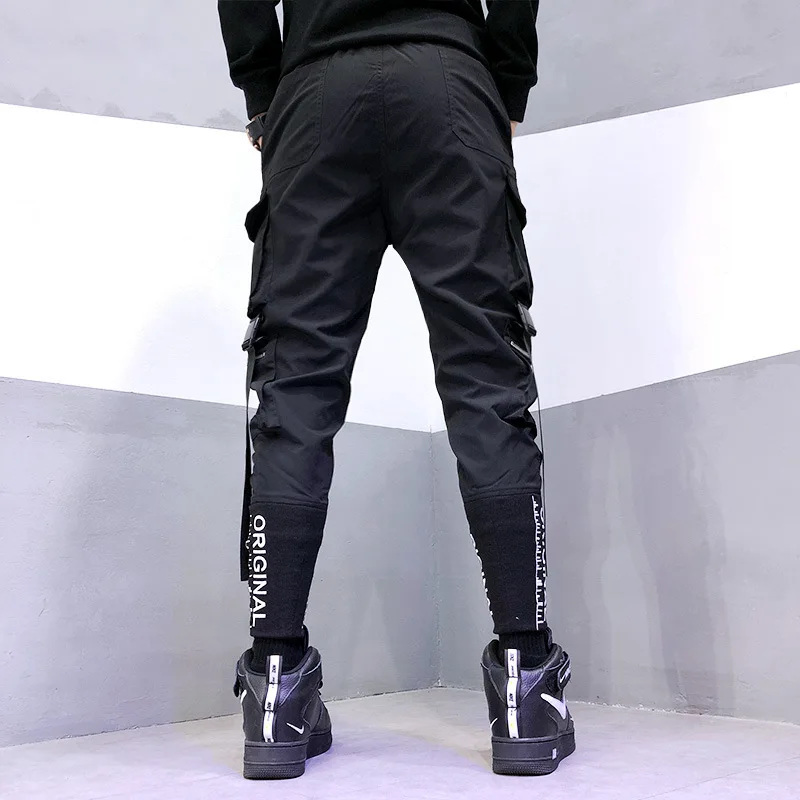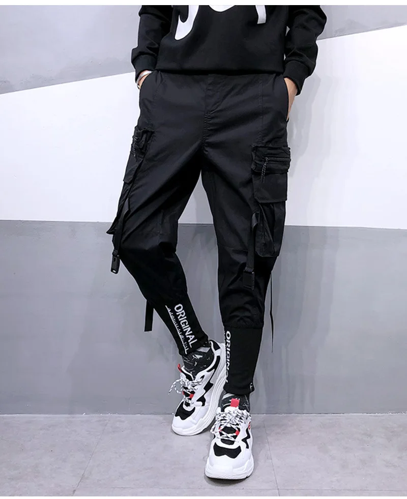 Новинка 2021, мужские брюки-карго в стиле хип-хоп, джоггеры с несколькими карманами, черная уличная одежда, модные спортивные брюки с лентами, мужские бриджи