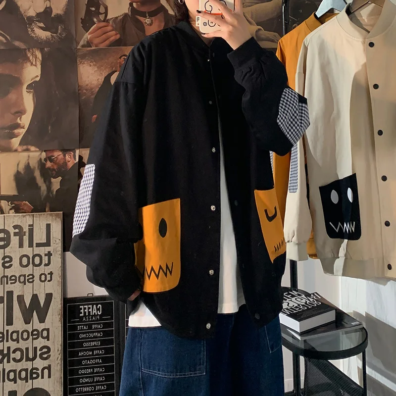 Весна-Осень 2022, Черная Куртка Varsity в японском стиле, Мужская У...