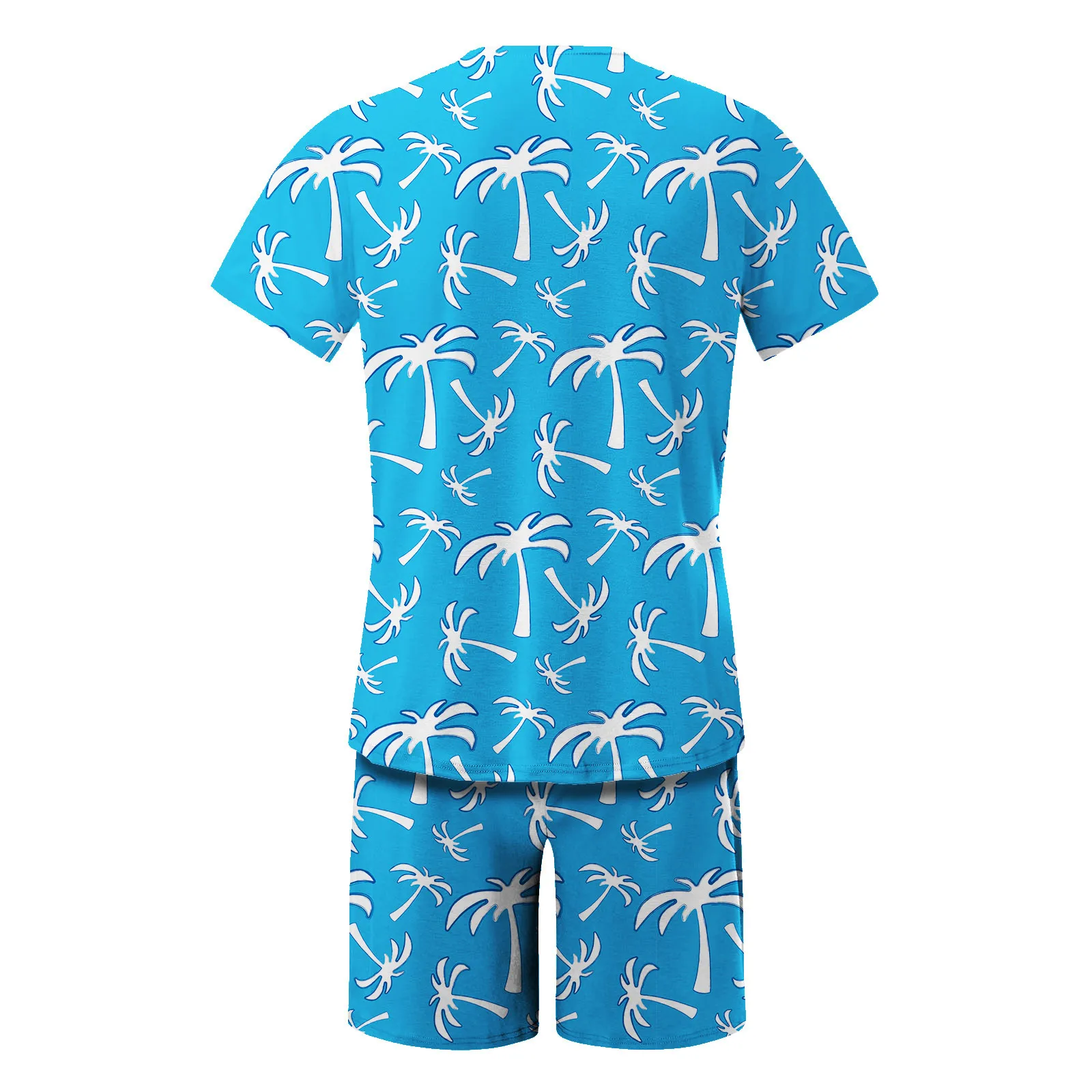 Спортивный костюм мужской, летний, пляжный, синий, футболка с коротким рукавом и шорты, штаны, с принтом "Кокос"
