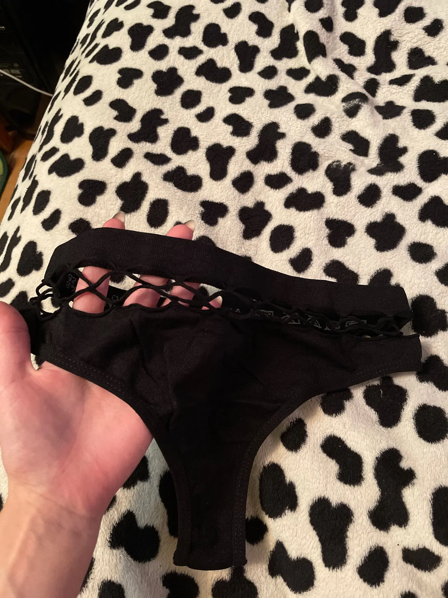 Смотрится очень клево. Вот прям как на фото и качество хорошее. Только на внутренней стороне резинки огромными буквами написано мейд ин чайна. У меня моментально, когда я это увидедела заиграла песня "Принцесса в трусах с алиэкспресса" в общем сразу палишься где ты их заказала, так что для свиданий они врядли подходят ))