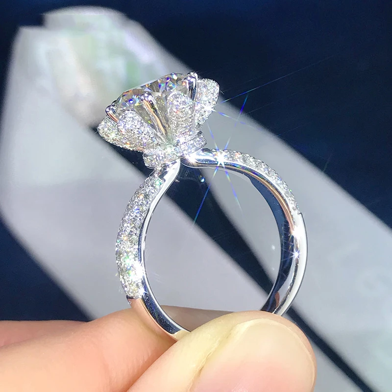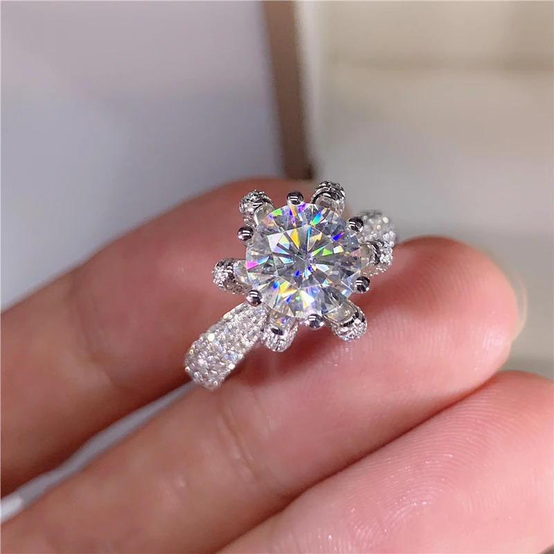 Индивидуальный заказ 5.0ct Сертифицированный Муассанит Обручальные кольца для женщин 100% 925 стерлингового серебра VVS1 D Цвет лаборатории Diamond обручальные кольца ювелирные украшения