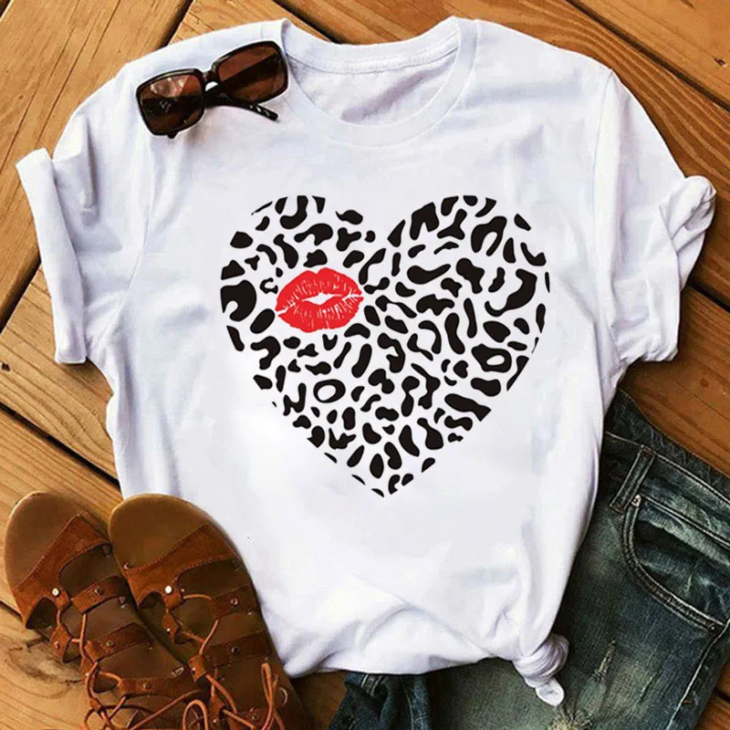 Футболка женская оверсайз, Повседневная рубашка с красным сердечком...