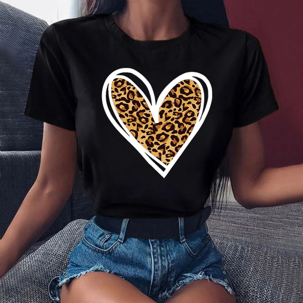 Женская футболка с принтом леопарда, с коротким рукавом, в стиле 90-х