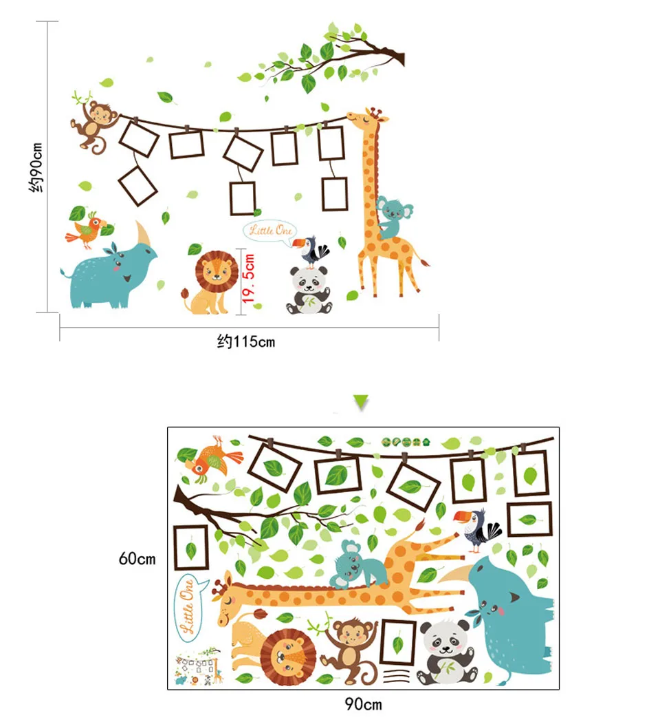 Большие настенные наклейки в скандинавском стиле с мультяшными животными для детской комнаты, для мальчиков, девочек, для детской комнаты, для спальни, Декор, украшения джунглей, обои для детской комнаты