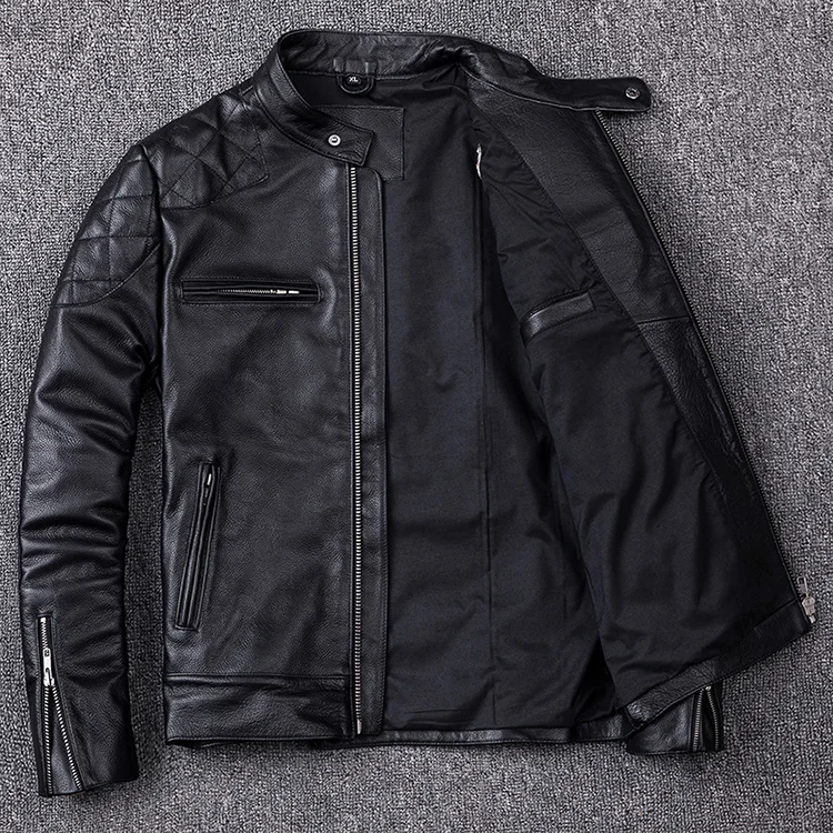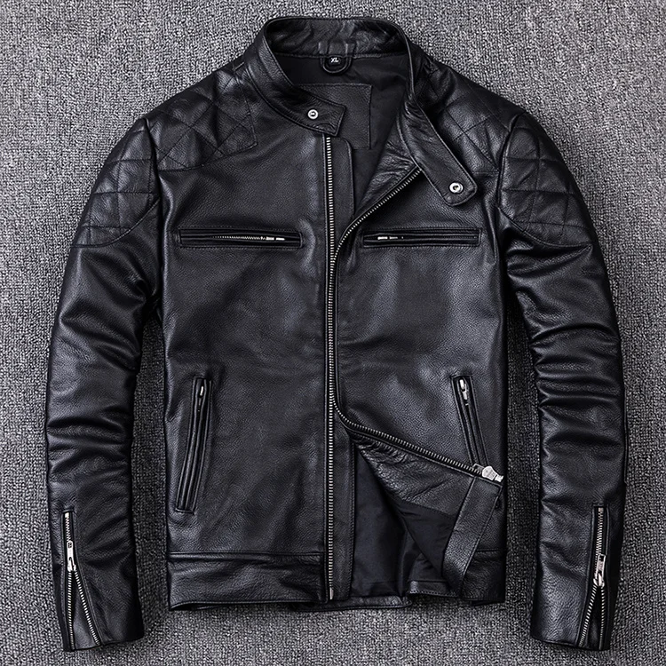 Мужская приталенная куртка из натуральной воловьей кожи, в байкерском стиле
