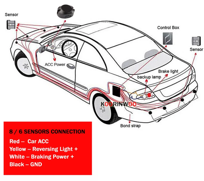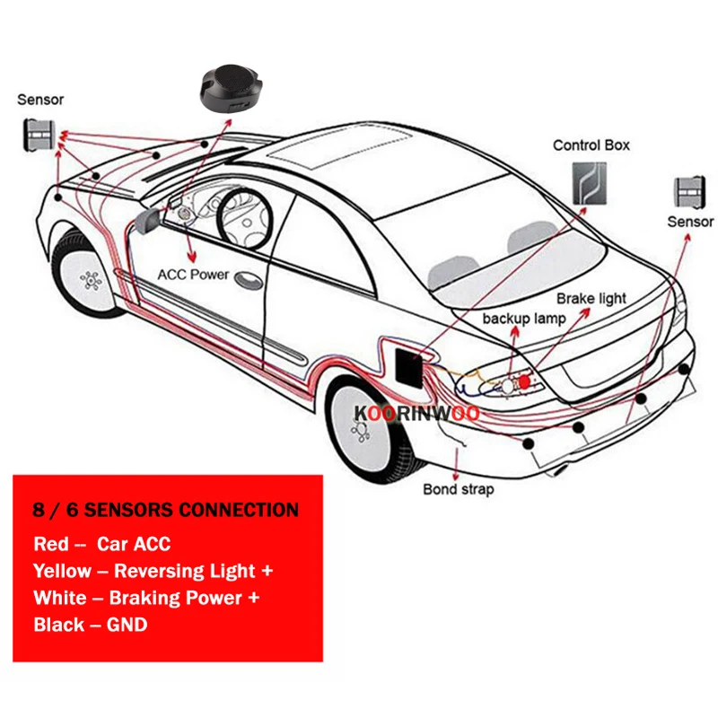 8 датчиков: Когда вы торможете, передние датчики будут работать автоматически, когда вы задним ходом, задние датчики будут работать автоматически