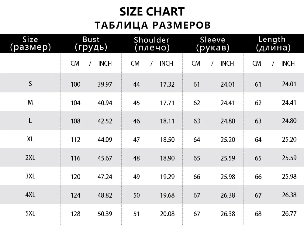 • Все вышеуказанные измерения являются фактическими измерениями одежды. Для хорошей посадки,При выборе размера из таблицы выше, пожалуйста, добавьте 8 см ~ 10 см в объем груди.