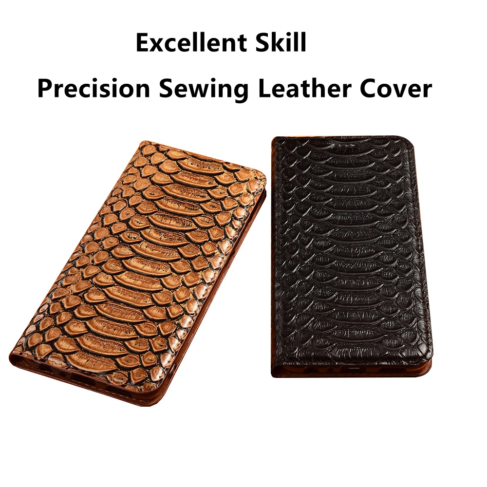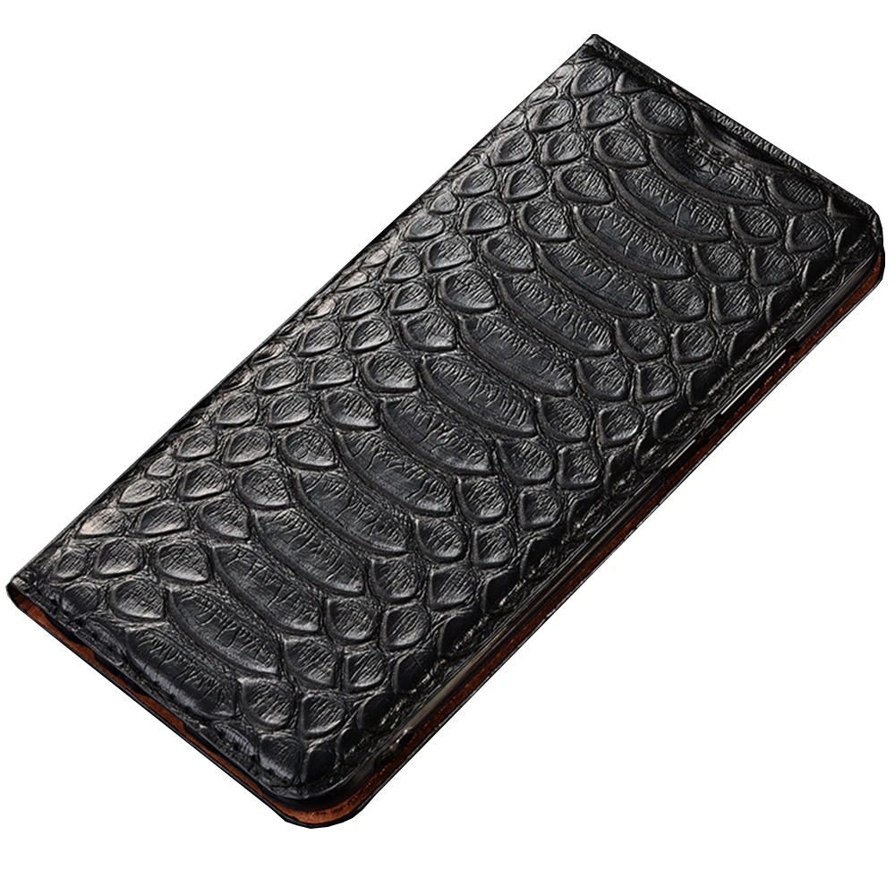 Чехол-книжка из натуральной кожи под питона с магнитной застежкой д...