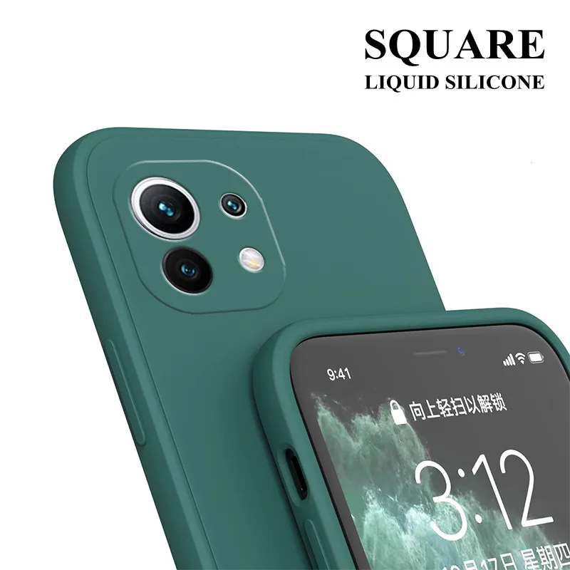Чехол для Xiaomi Mi 11 Mi 11 Lite Mi 11 Pro Mi 11 Ultra, роскошный квадратный оригинальный мягкий чехол из жидкого силикона