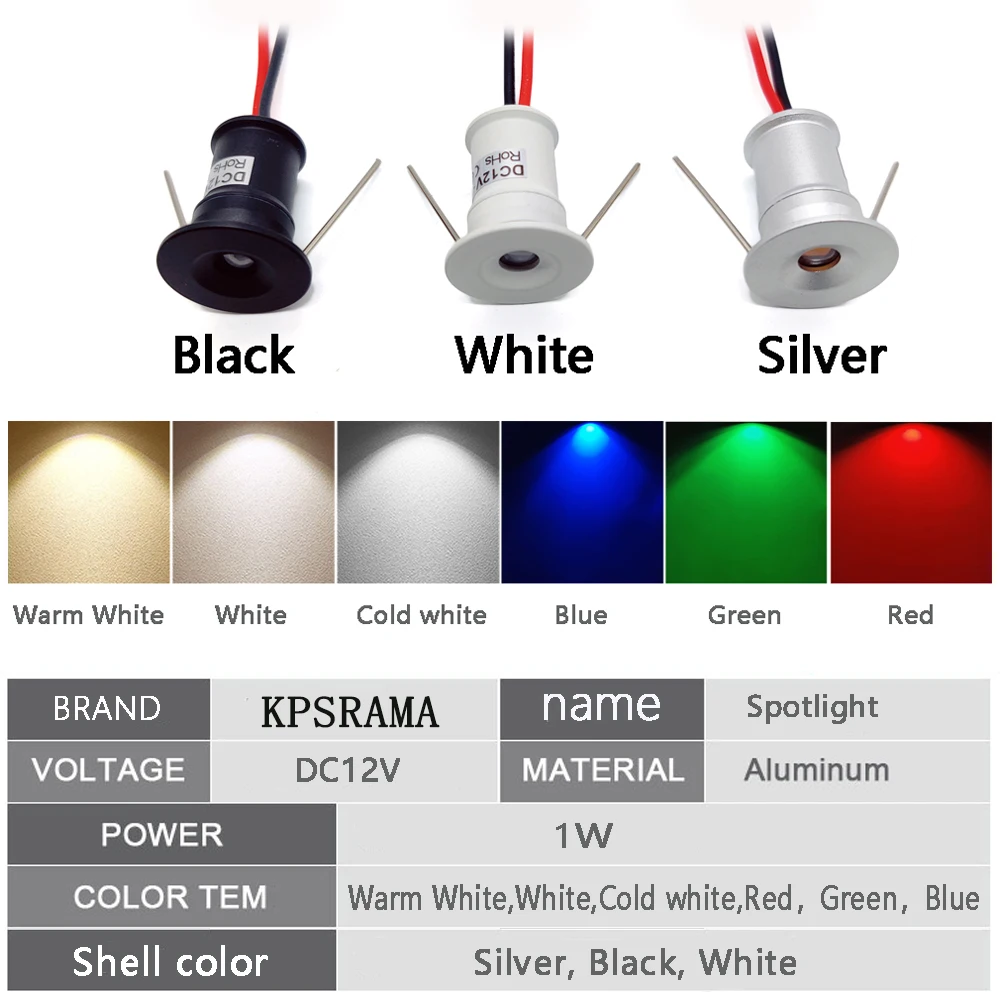Миниатюрный встраиваемый потолочный Точечный светильник, миниатюрный Точечный светильник с белым, черным, серебристым корпусом, для кухни, спальни, IP65, 1 Вт, 12 В