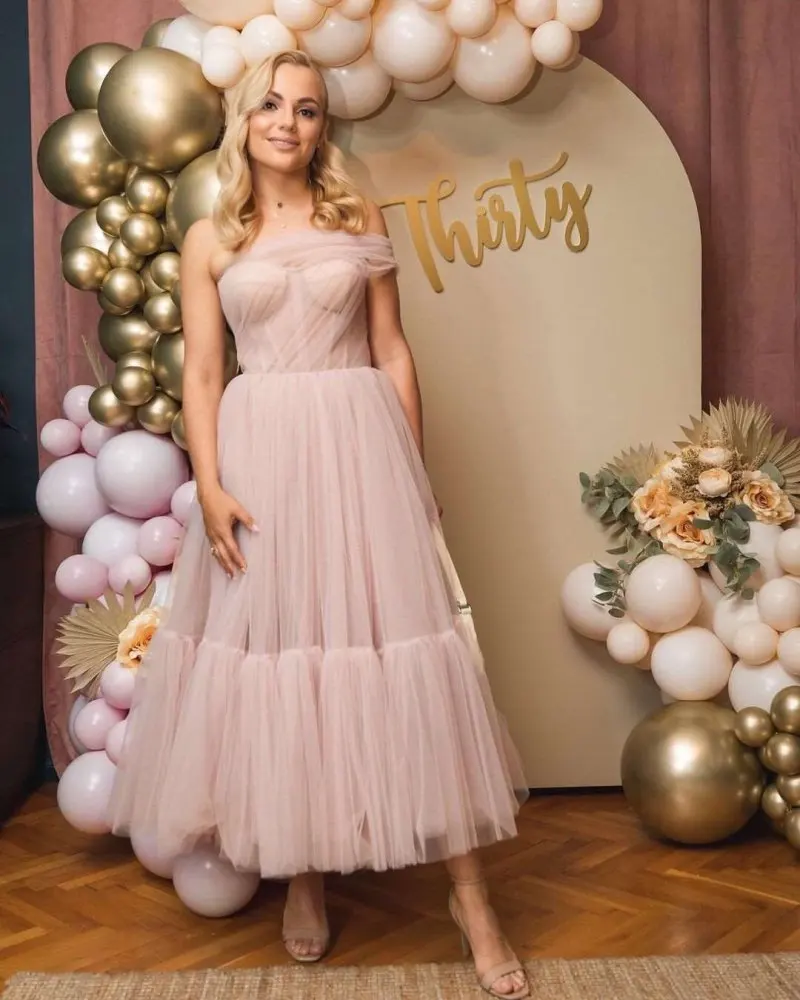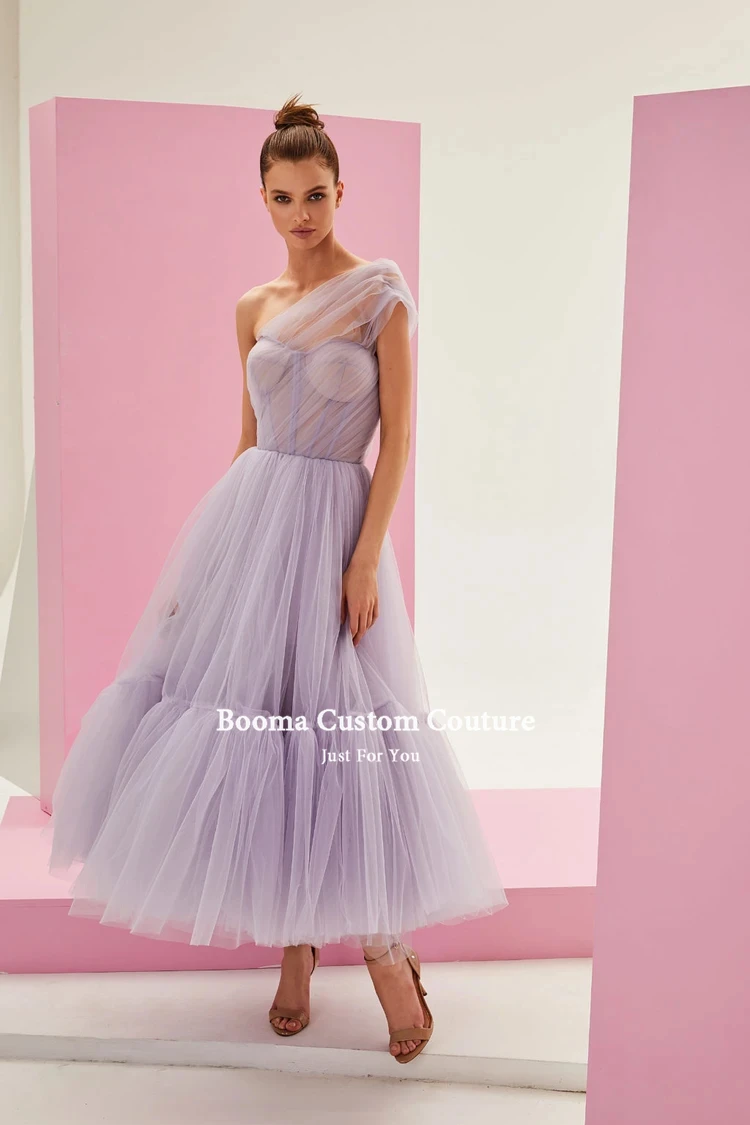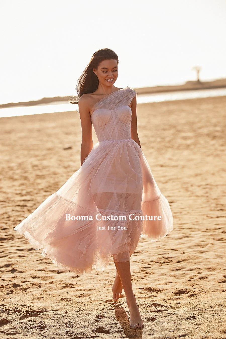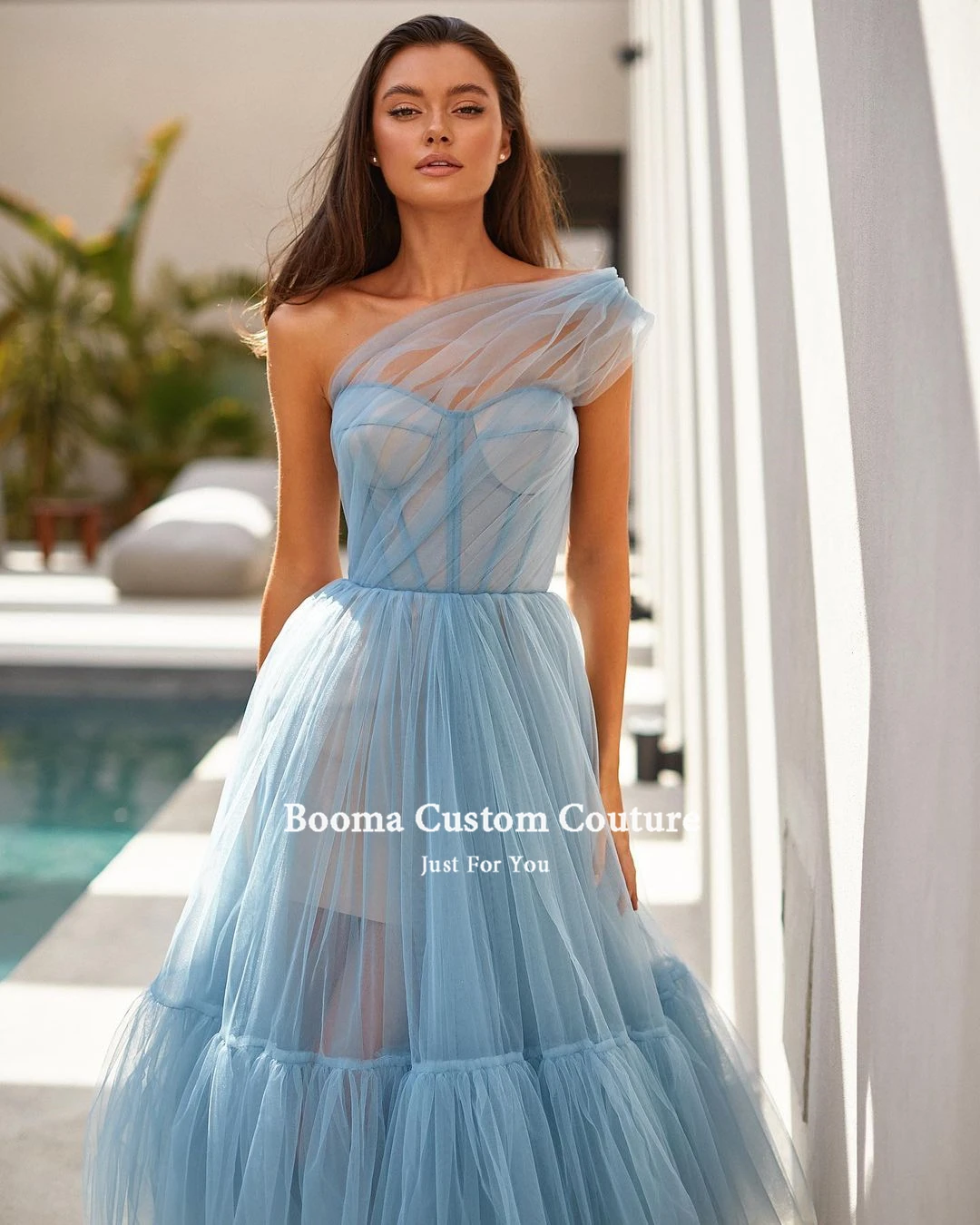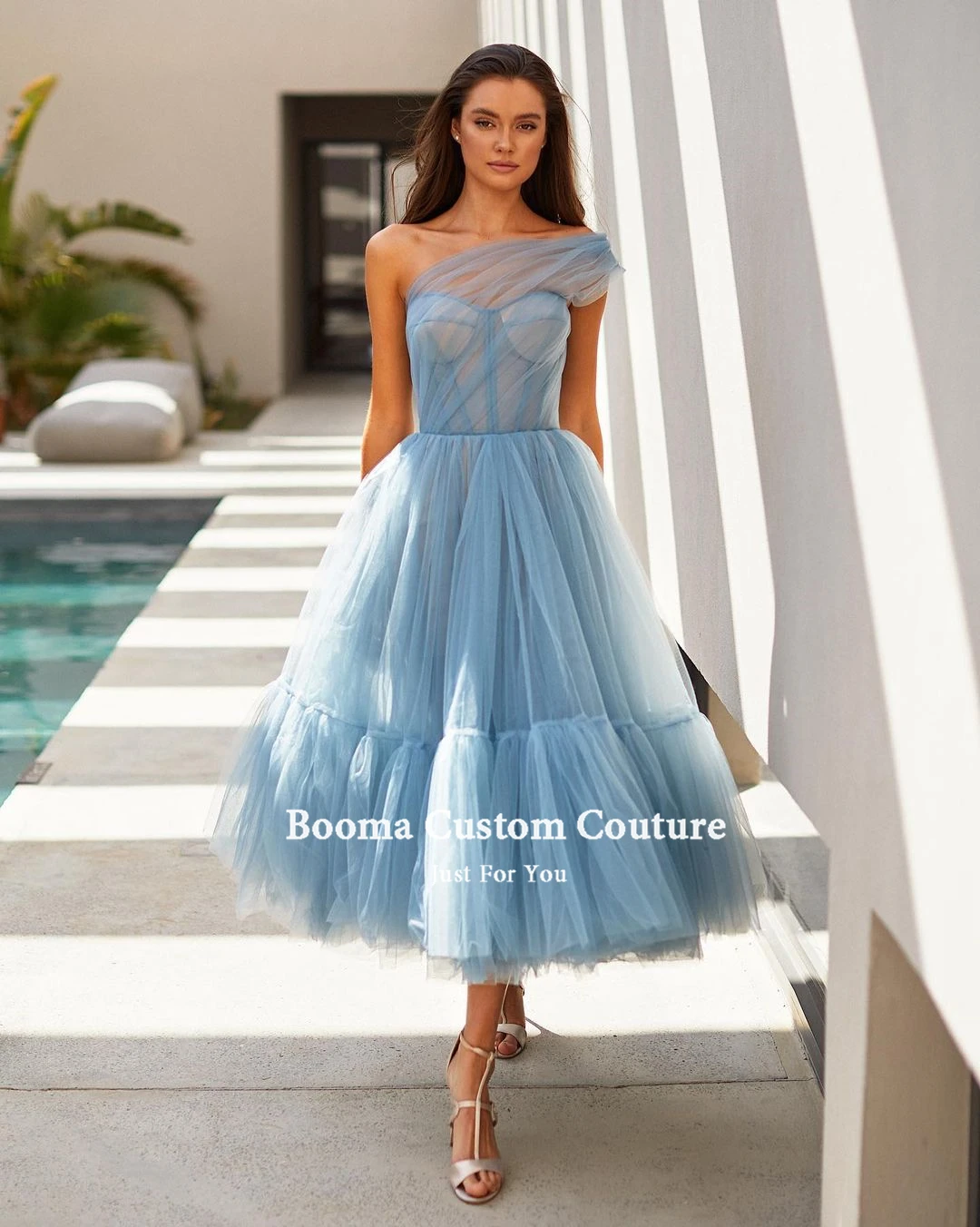 Простое синее Тюлевое платье-миди Booma для выпускного вечера, ТРАПЕЦИЕВИДНОЕ свадебное платье на одно плечо, платье с открытой спиной для выпускного вечера