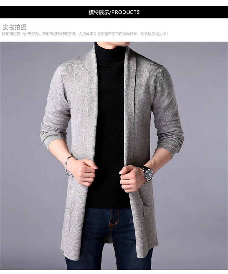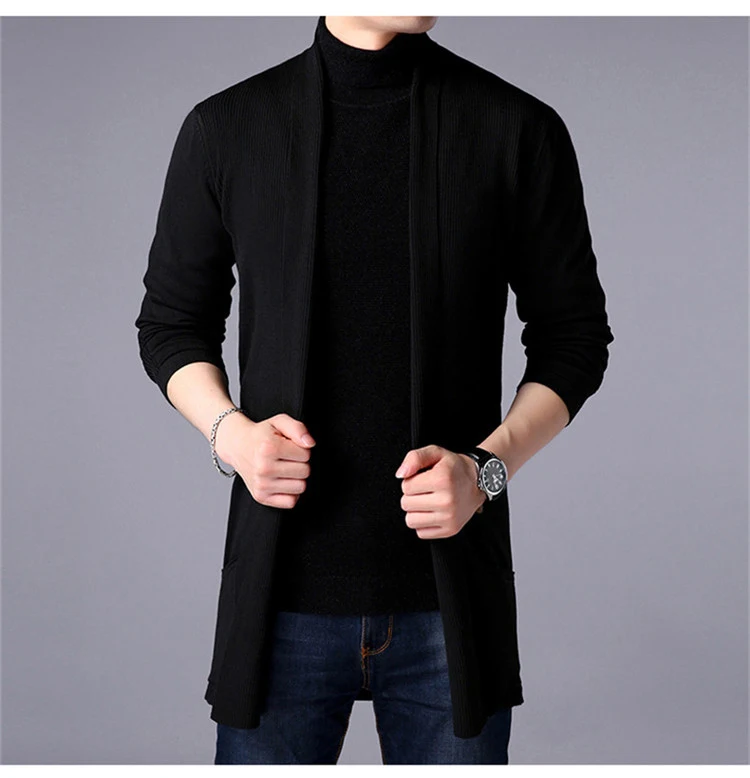 Мужской свитер, пальто, новинка 2020, осенняя мужская облегающая длинная однотонная вязаная куртка, модный Мужской Повседневный свитер, кардиган, пальто