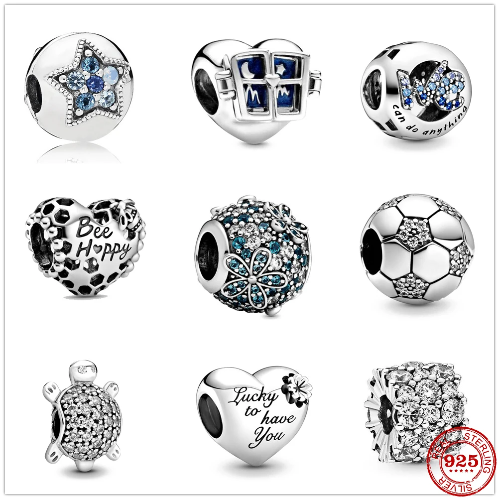 Новые круглые подвески в форме сердца, серебряные подвески, бусины для рукоделия, подходят для Pandora, оригинальные подвески для браслетов, ювелирные изделия