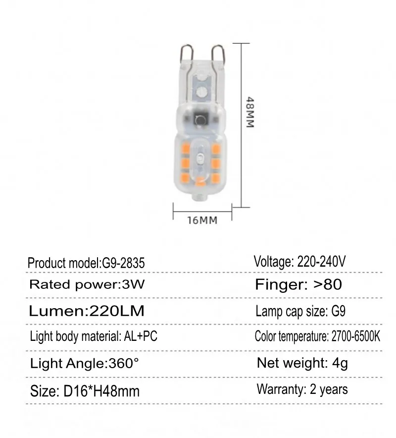 Страна: FR Emitting Color: G9 7W 220V Color: Milky Number of LED Chip: Warm White Wattage: 1pcs Доставка: Saver Shipping 18.09.2022
