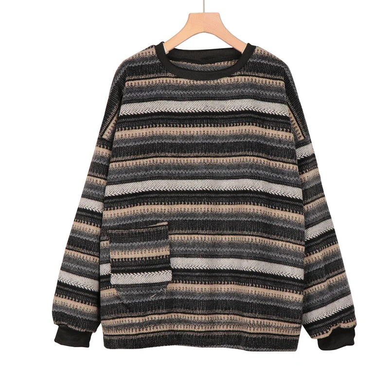 Винтажный Женский пуловер в полоску, Свитер оверсайз для пар, вязан...