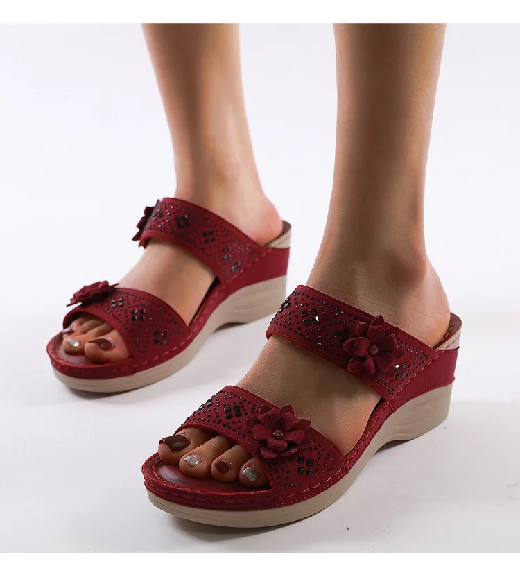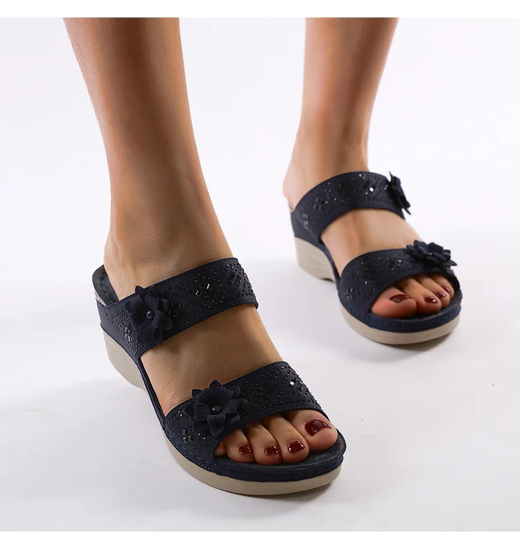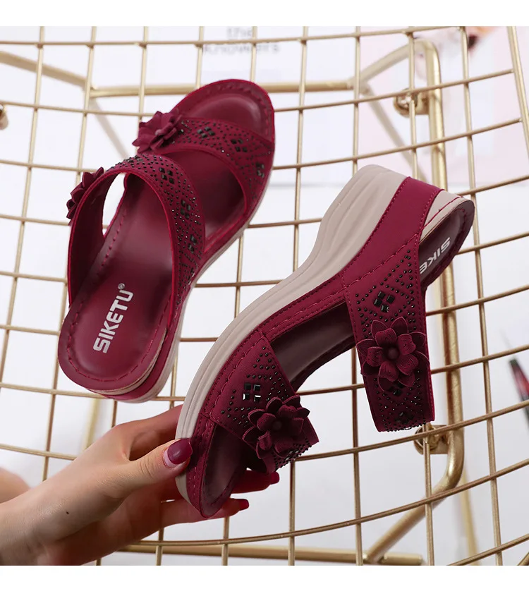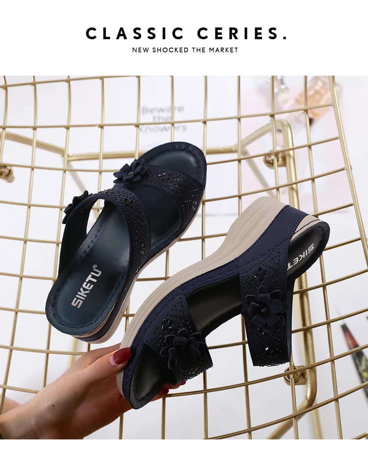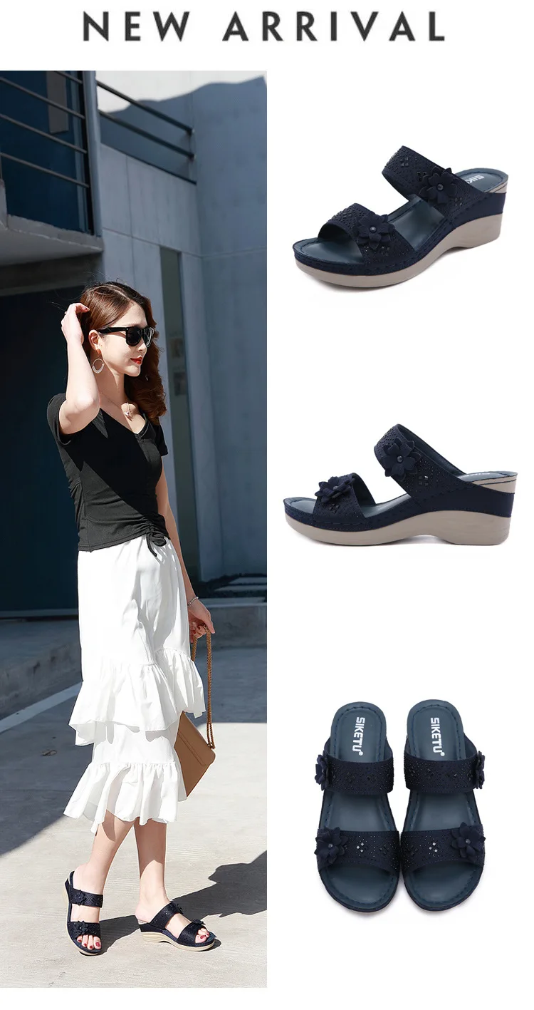 Женские босоножки на танкетке 2021, удобные роскошные Дизайнерские летние сандалии с цветами на высоком каблуке, повседневные Нескользящие тапочки