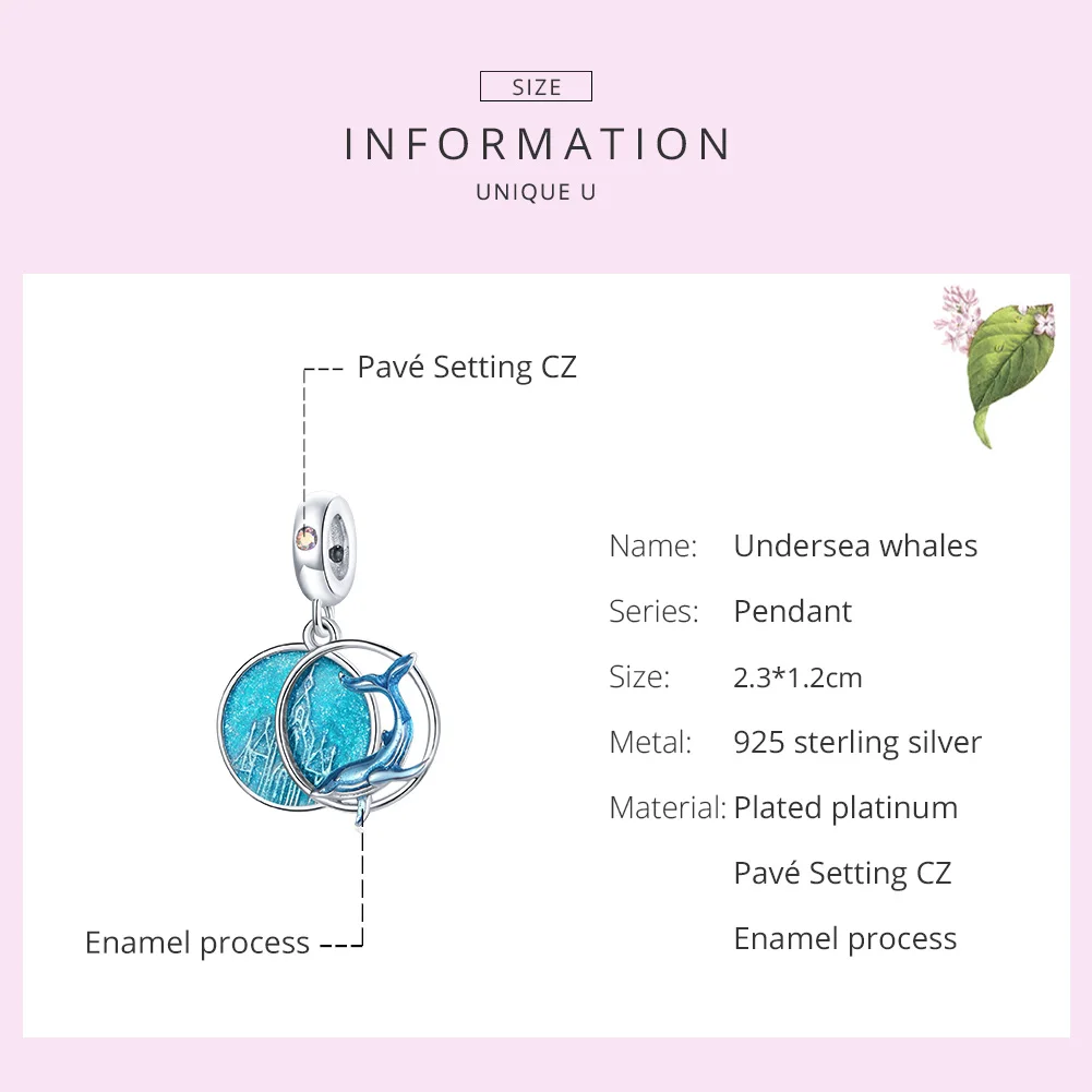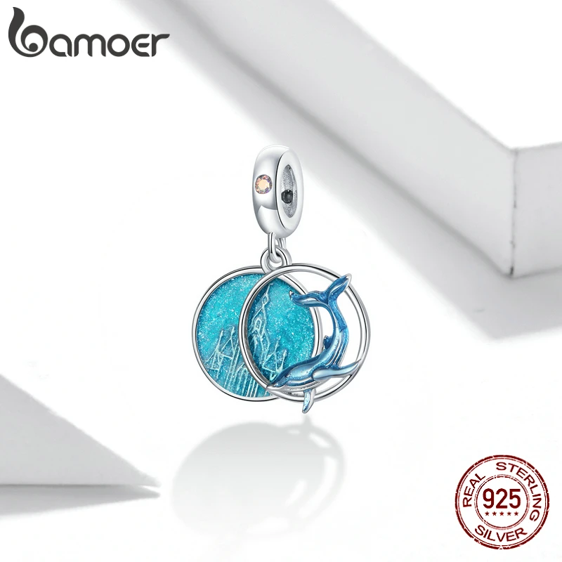 Подвеска BSC434 женская из серебра 925 пробы с эмалью, подводные киты, синий океан, Шарм-подвеска для оригинального браслета, ювелирные изделия