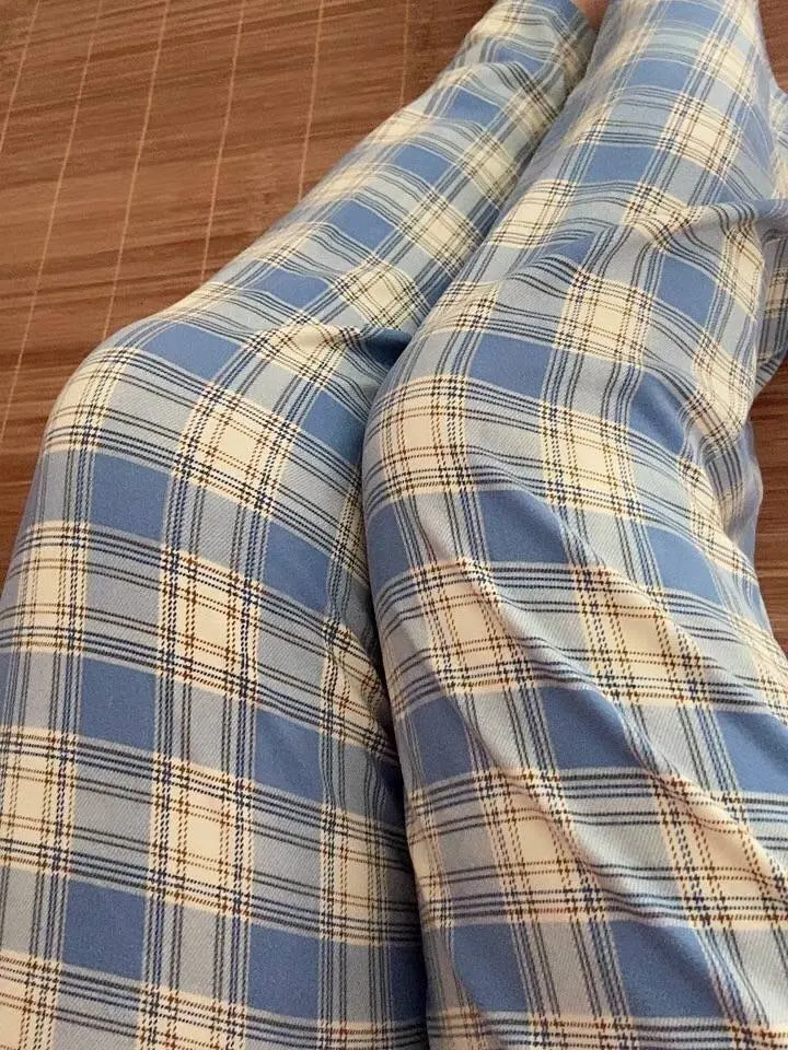 Женские брюки в клетку, летние аниме брюки с высокой талией, новинк...