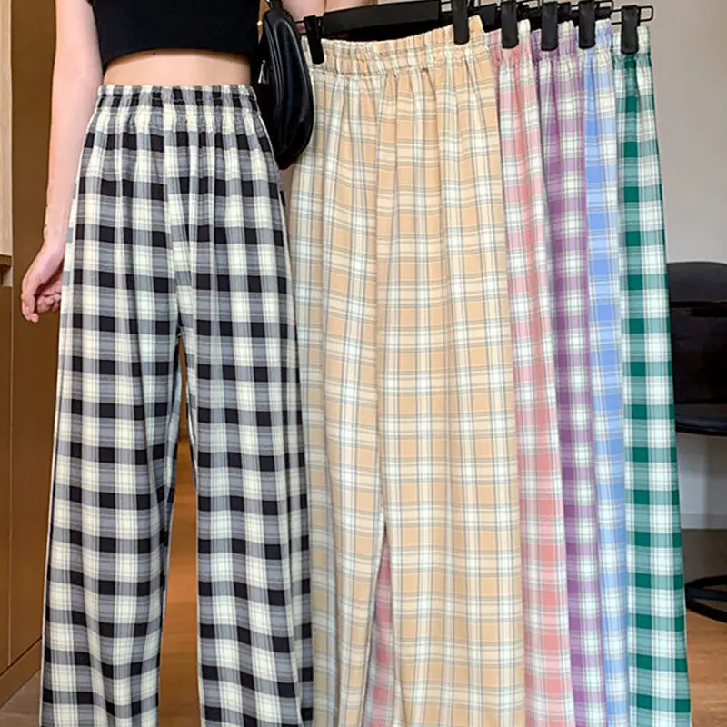 Брюки женские хлопковые в клетку, с широкими штанинами, в Корейском...