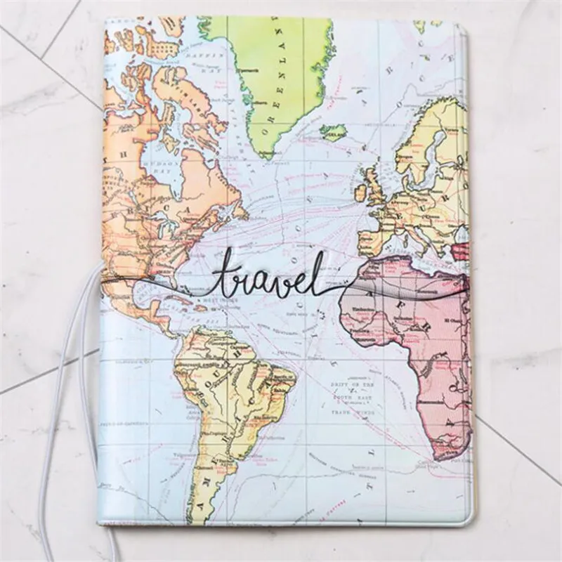 Обложка для паспорта с картой мира для мужчин и женщин, креативный бумажник из искусственной кожи с надписью, портативный дорожный аксессуар для удостоверения личности