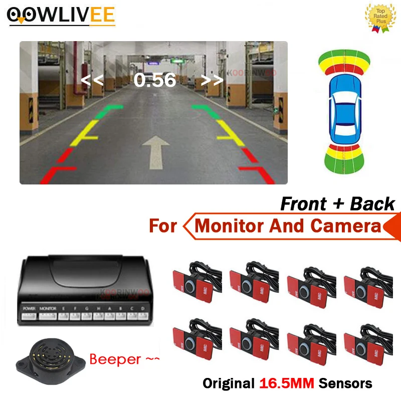 Парктроник OOWLIVEE с двумя процессорами, 8 датчиками, передний + з...