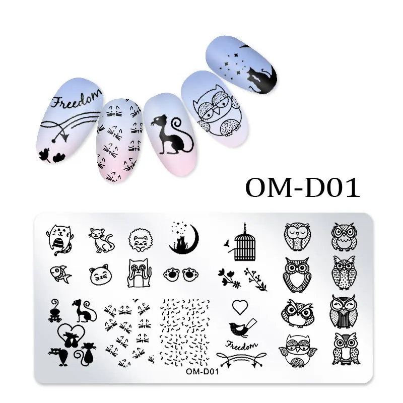 StylesSnowflakes/Lace/Owl/Gift/Penguin/Rabbit nail stamping plate 3d sticker