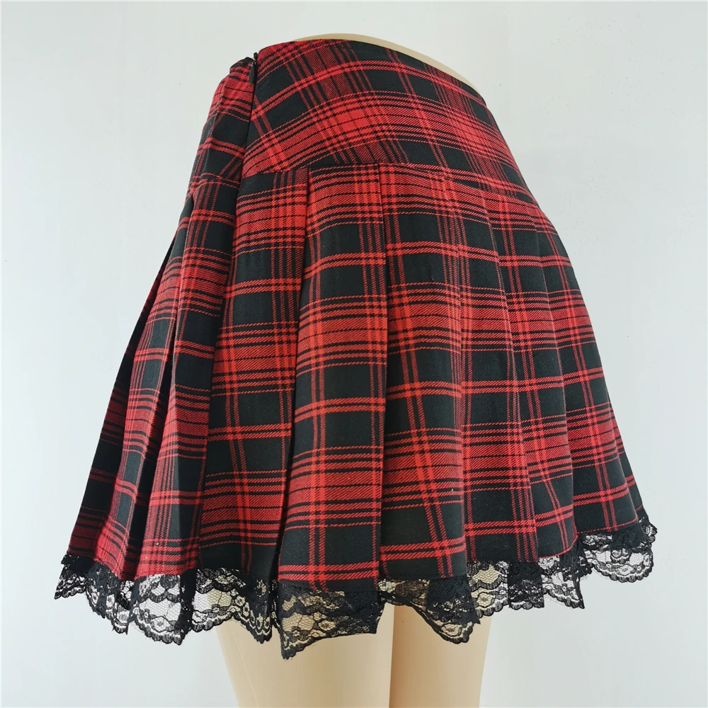 Юбка в шотландскую клетку, в готическом стиле, контрастная кружевная, винтажная, для фигуристов, панк-юбка