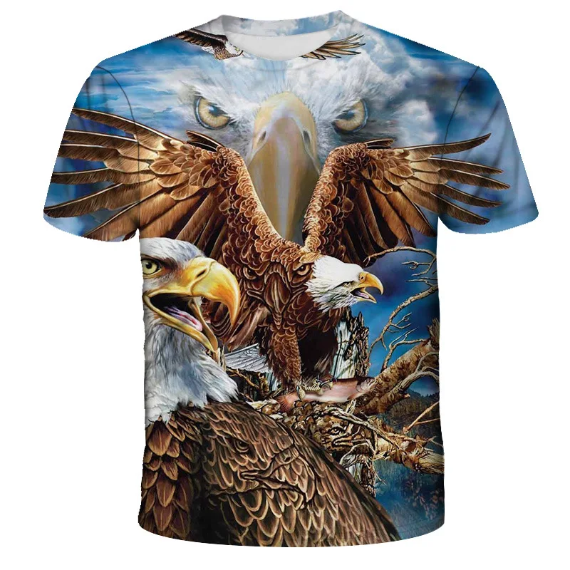 Футболка мужская с рисунком орла, Свободный Топ с коротким рукавом, забавный уличный графический Рисунок, Повседневная рубашка с вышивкой, Одежда большого размера, на лето