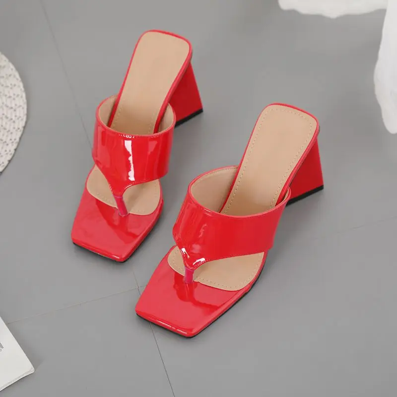 2021 Новинка; Летние шлепанцы для женщин Лакированная кожа красного...