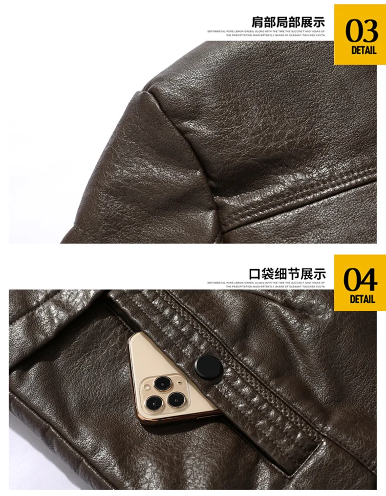 2021 зимняя мужская кожаная куртка, однотонная подкладка, Вельветовая деловая куртка с отворотом средней длины, сохраняющая тепло черная кожаная ветровка