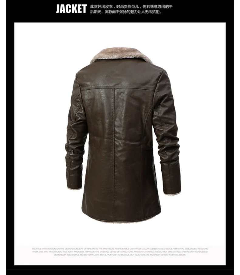 Мужская зимняя кожаная куртка, однотонная бархатная деловая куртка средней длины с лацканами и подкладкой, сохраняющая тепло черная кожаная ветровка, 2021
