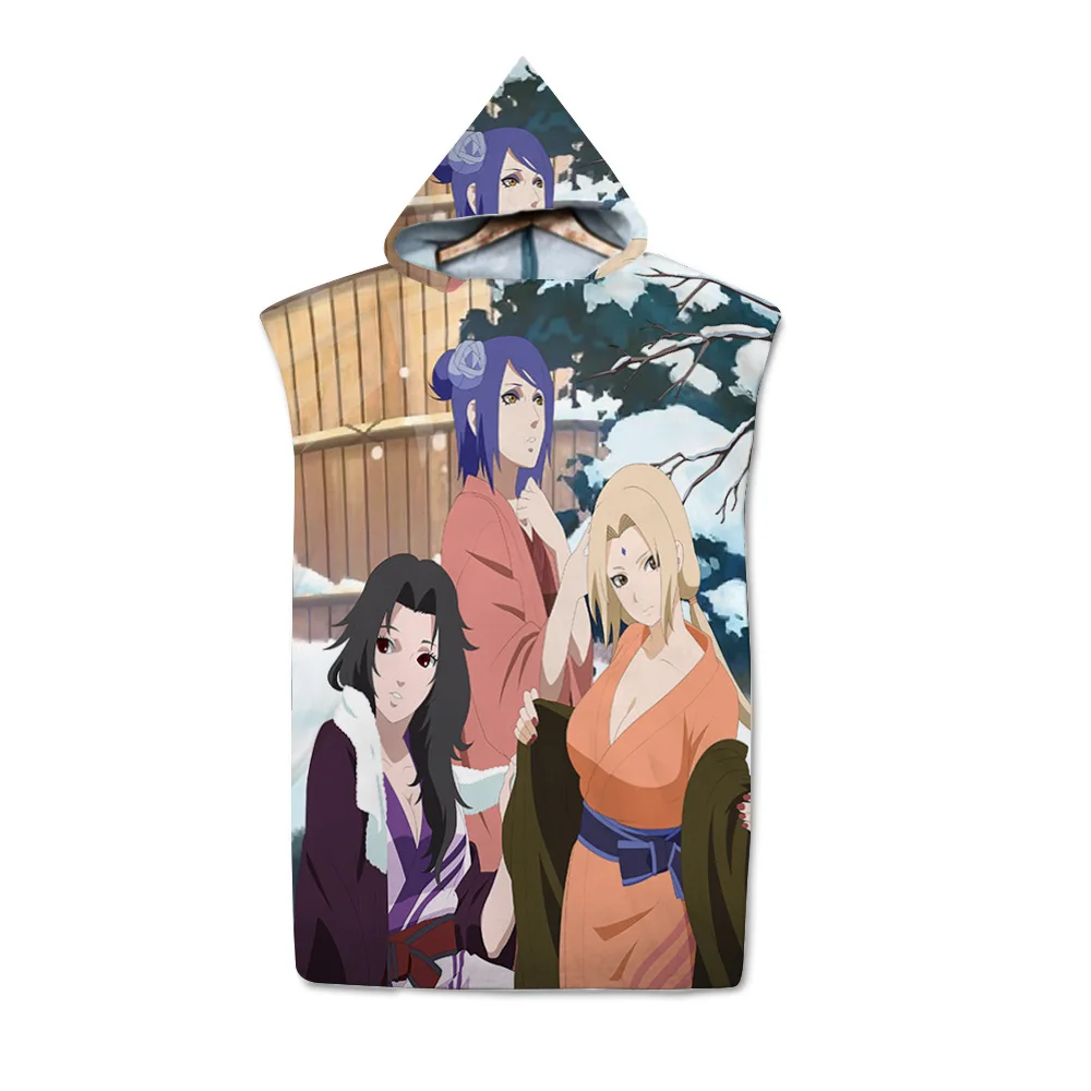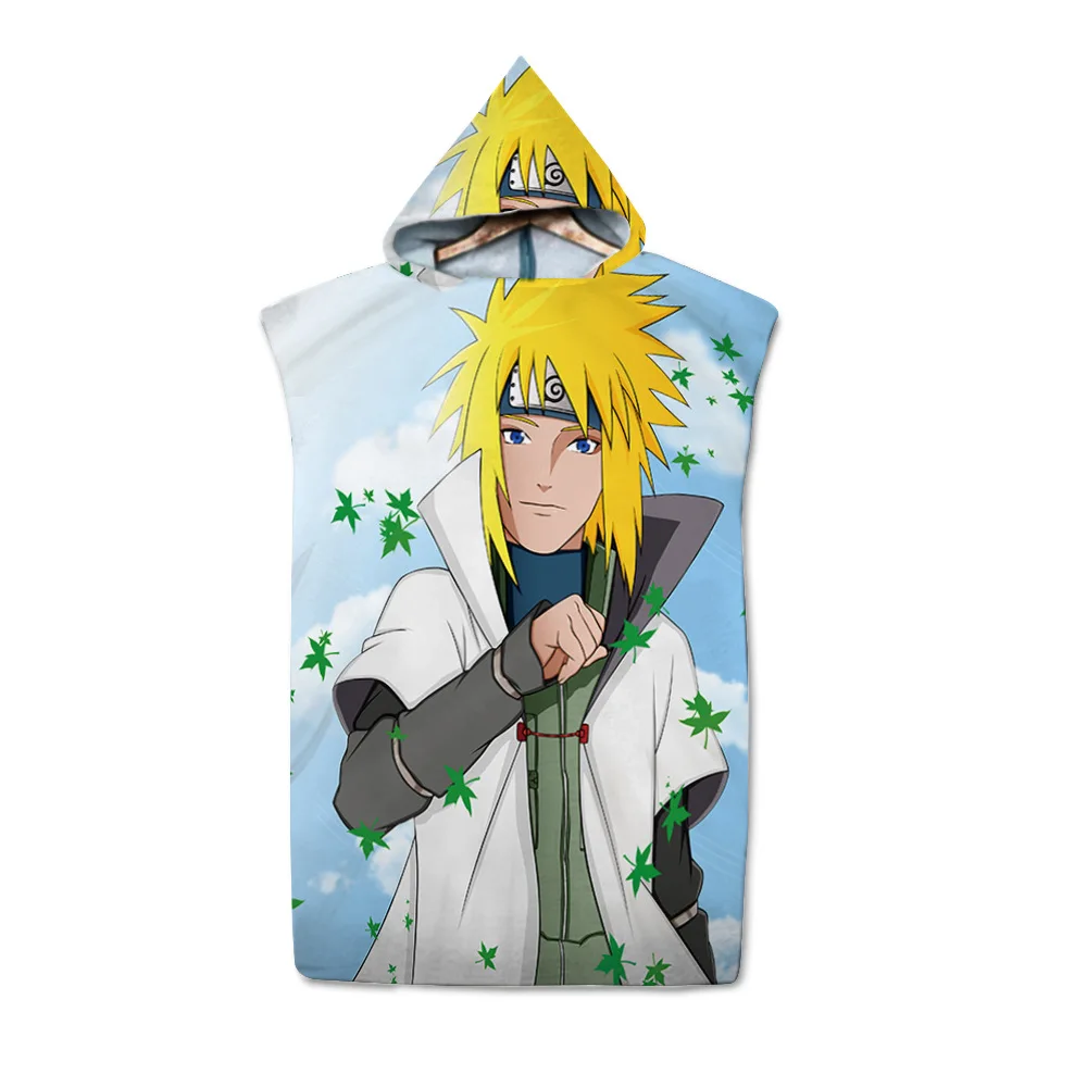Пляжное полотенце с капюшоном и 3D-принтом аниме ниндзя удзумаки Учиха нарупальцы, Быстросохнущий банный халат для плавания и серфинга, плащ для фитнеса