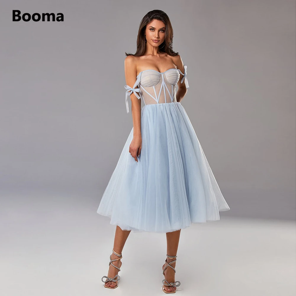 Синее Тюлевое миди-платье Booma для выпускного вечера, женское Бюстье, ТРАПЕЦИЕВИДНОЕ свадебное платье до середины икры, платья на выпускной