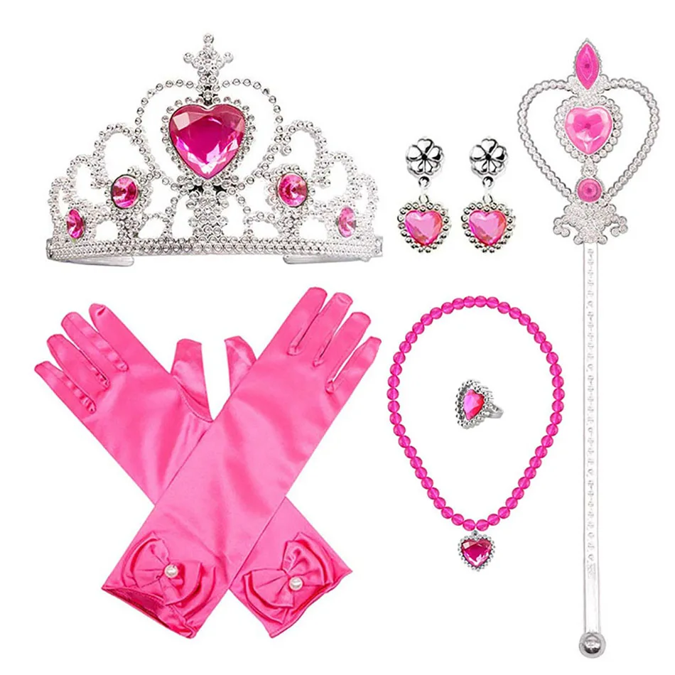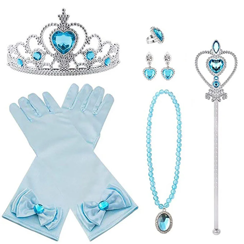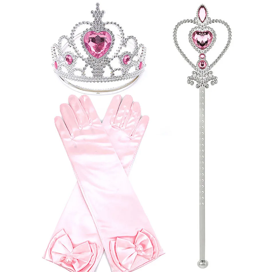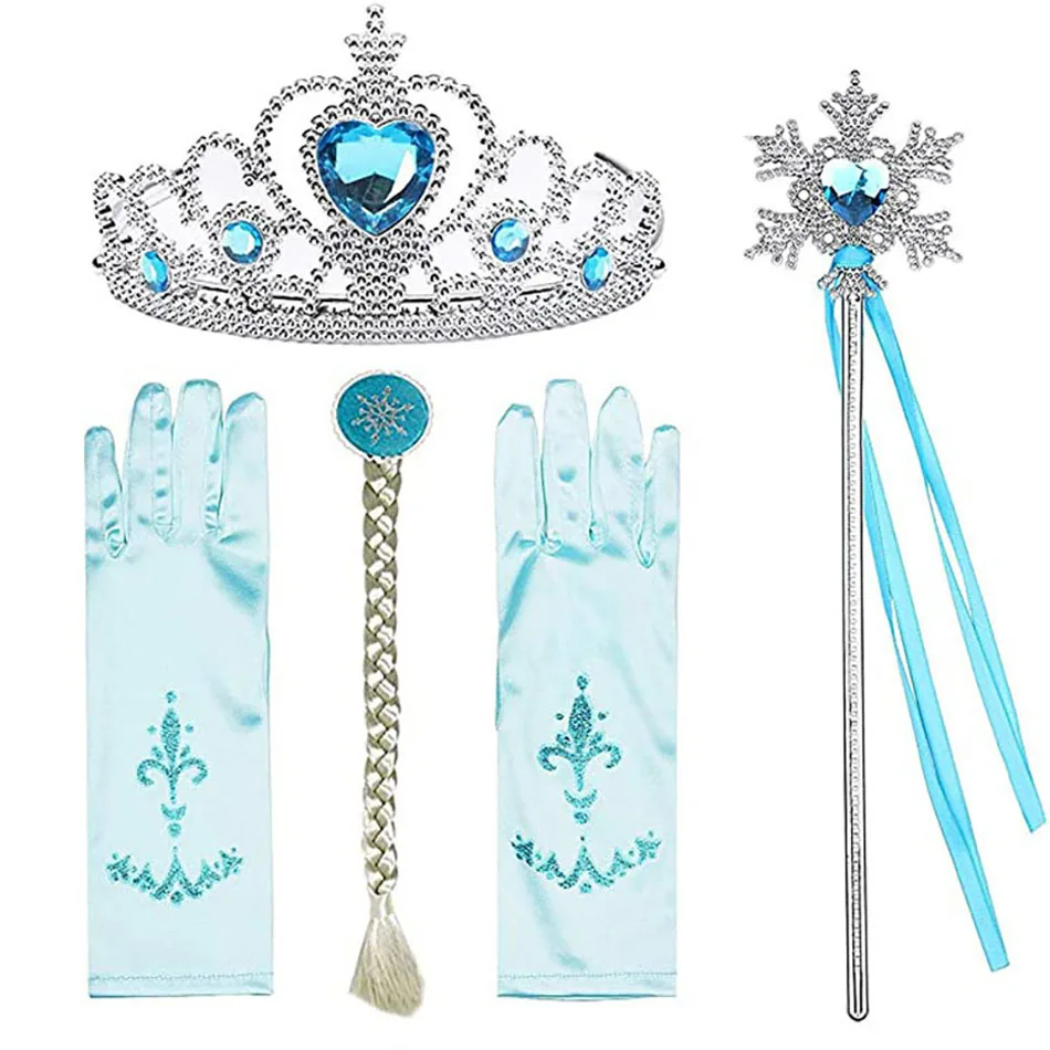 Перчатки в виде короны Эльзы для девочек, оплетка с волшебной палочкой, аксессуары для принцесс на Рождество, Хэллоуин, вечеринку, для детей, Снежная королева, Анна