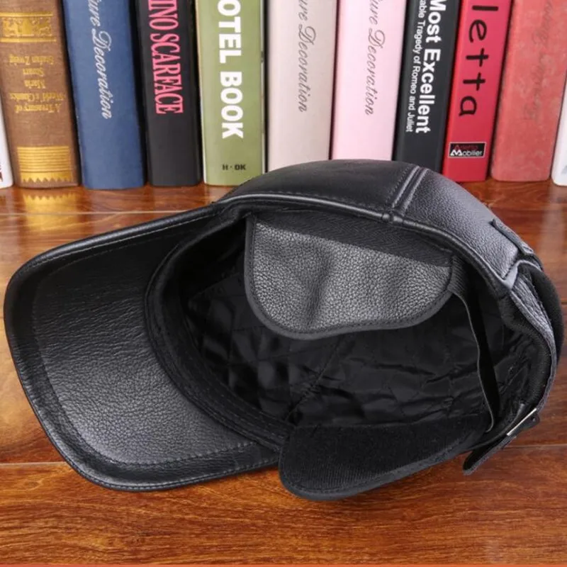 Зимняя шапка с наушниками, мужские береты из воловьей кожи, шапка и...