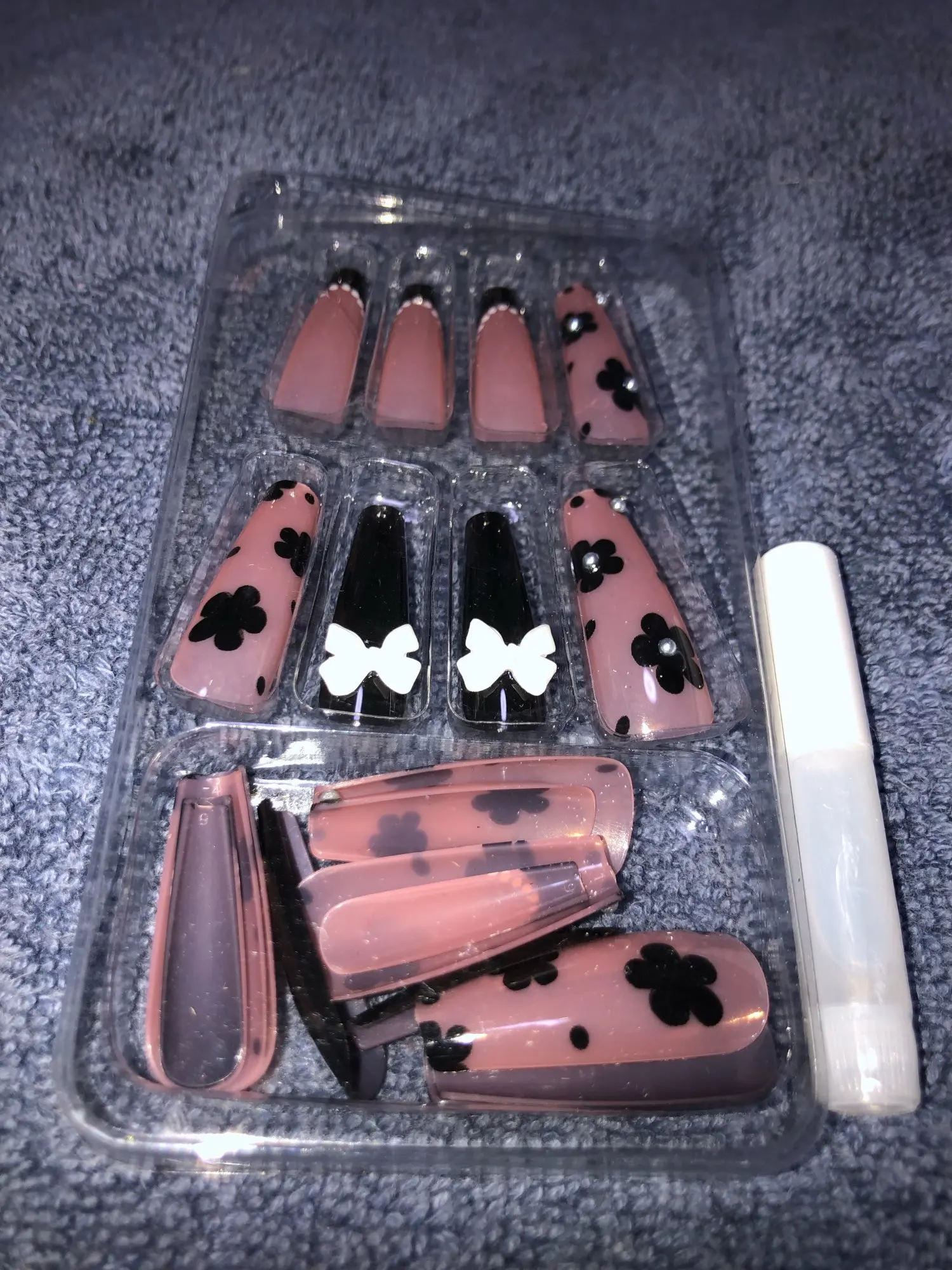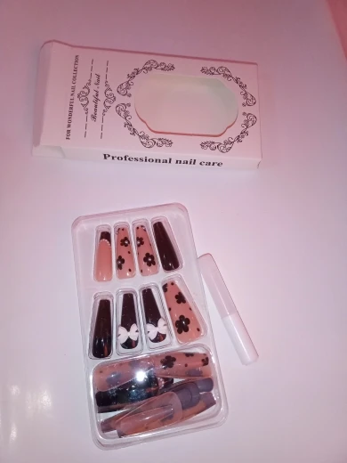 amazing! best glue-on nails I've ever purchased for a very low price. fit my nails very well, looks almost natural. the designs are very cute. comes with a glue tube. shipping was fast. love it