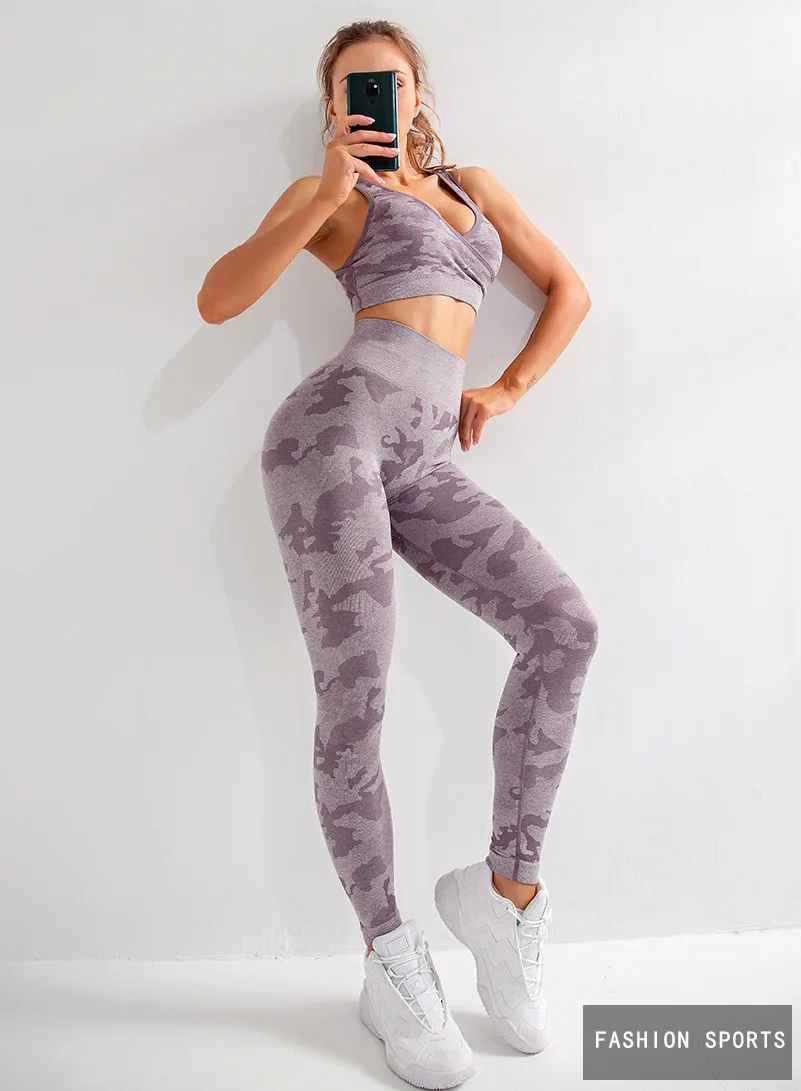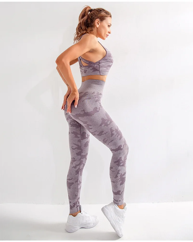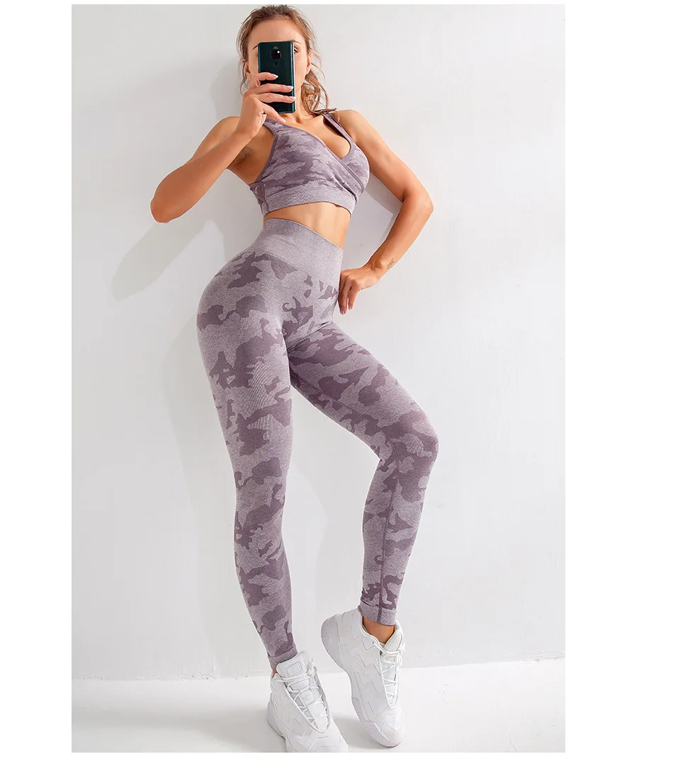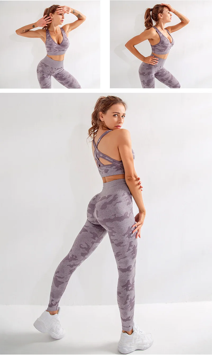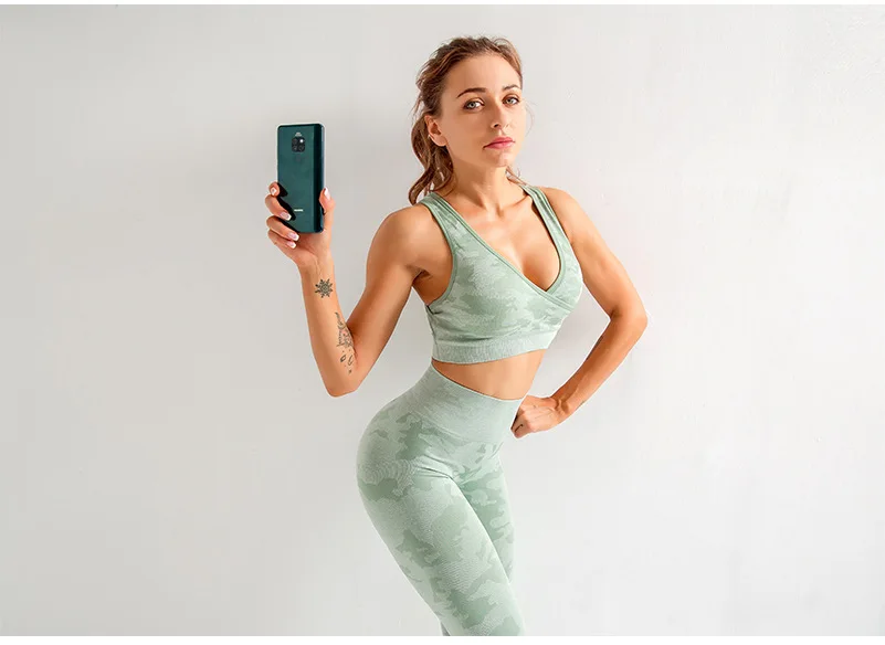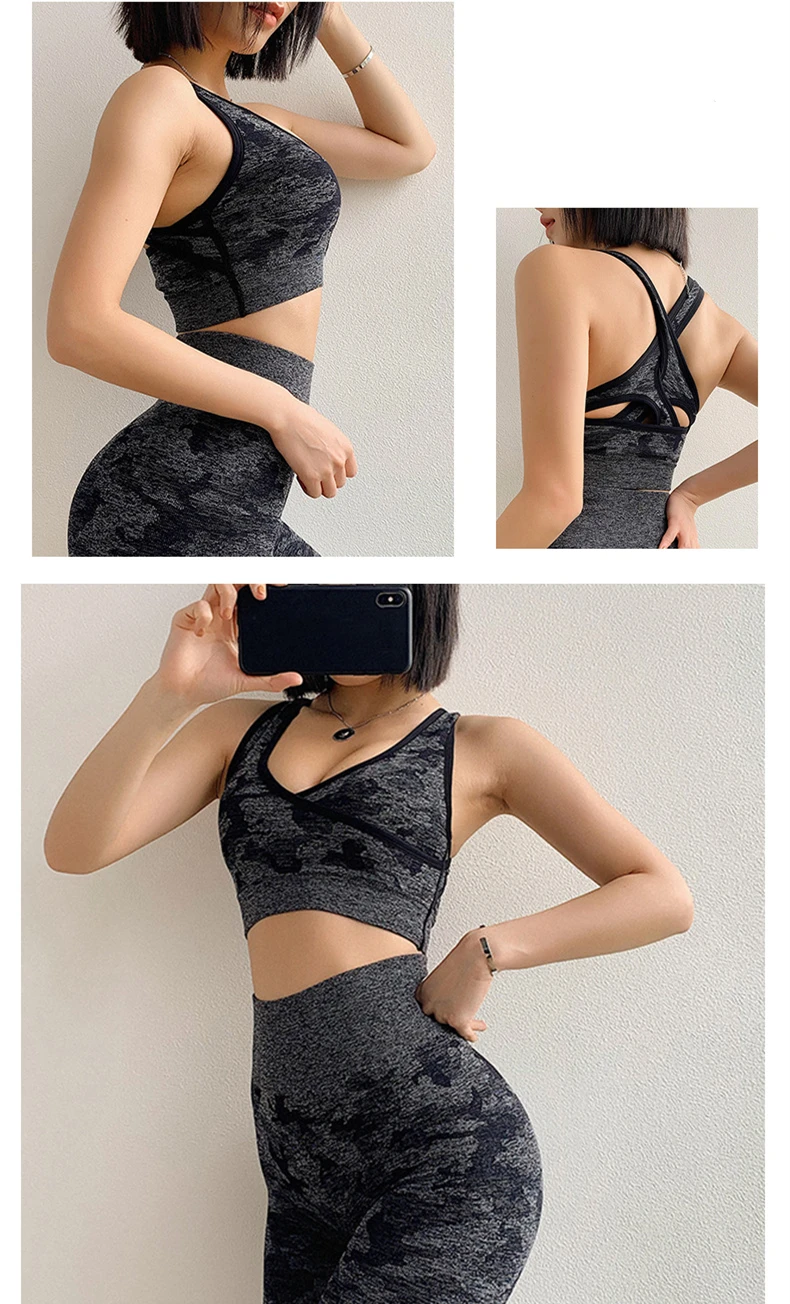 Женский комплект для йоги, бесшовный спортивный бюстгальтер и леггинсы с высокой талией