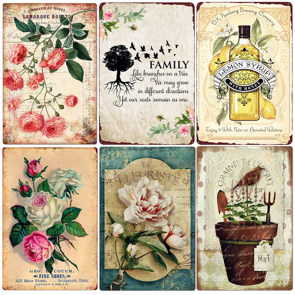 Винтажная металлическая жестяная вывеска с цветочным узором в стиле ретро, настенная табличка для сада, двора, кафе, знаменитый подарок, Настенный декор N414