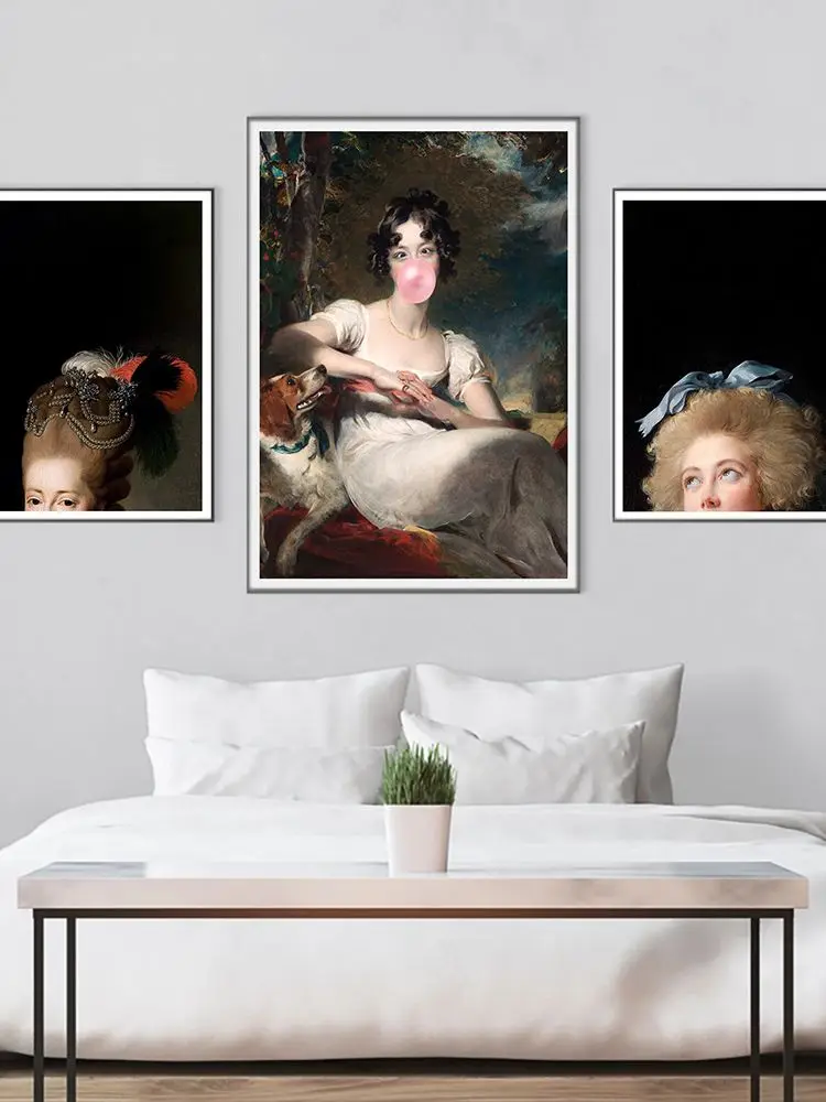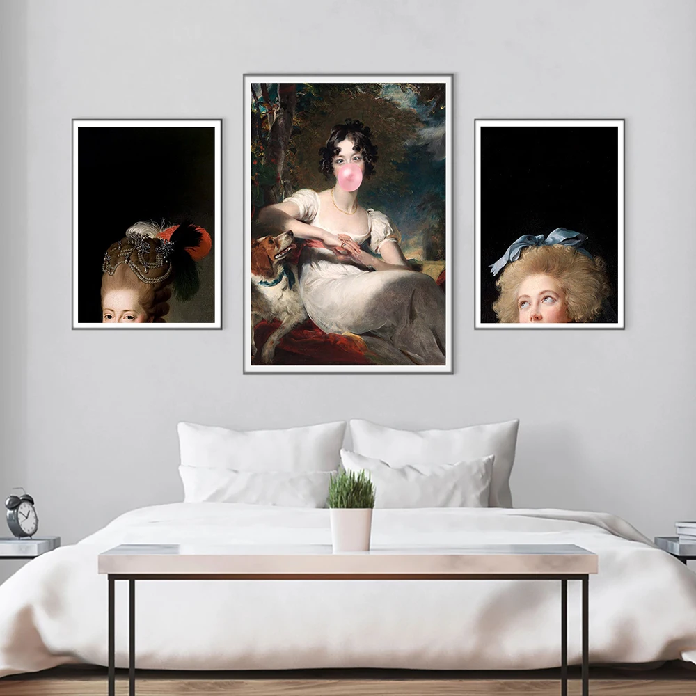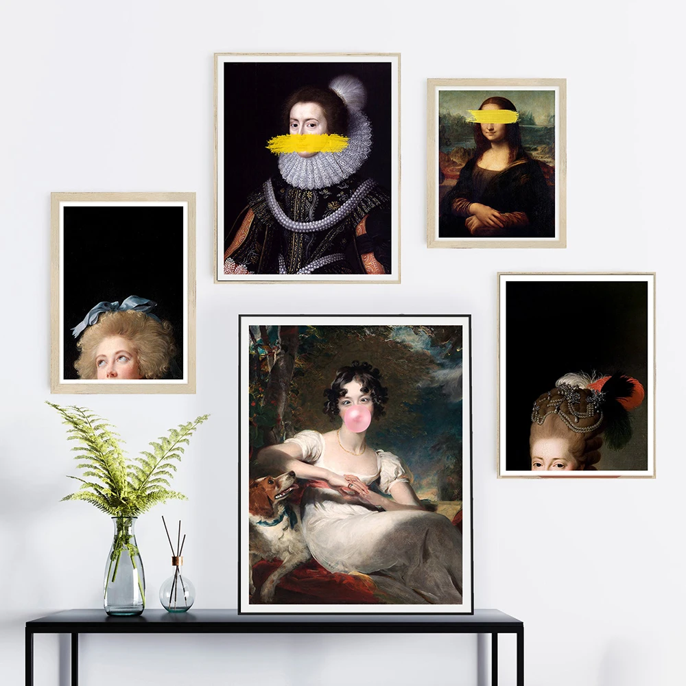 Художественный постер эпохи Возрождения винтажный Портрет леди пузырь жвачка печать картина Мона Лиза настенные картины нордический современный декор для гостиной