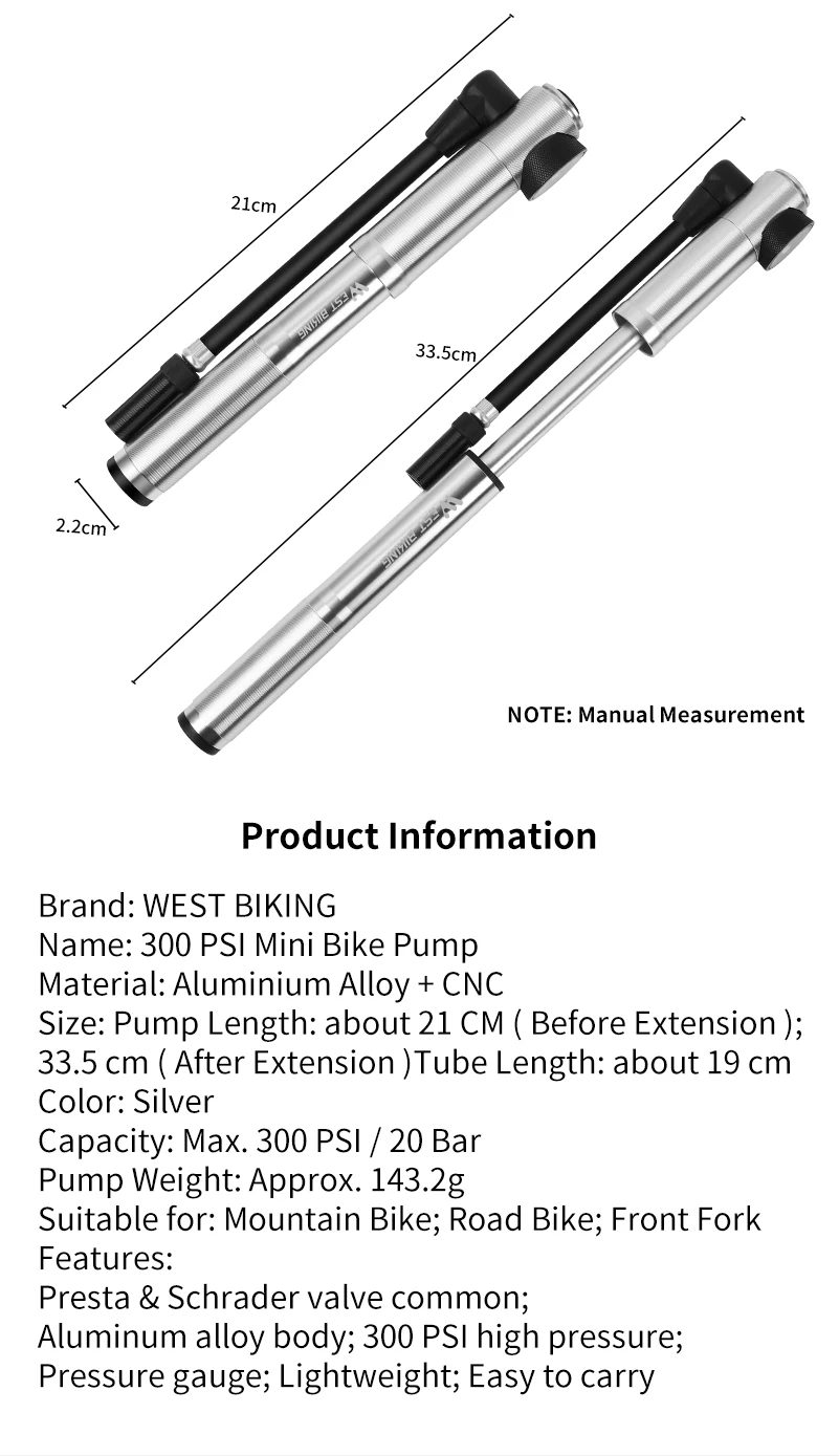 Насос ручной для горного велосипеда, WEST BIKING, портативный, 150 ...