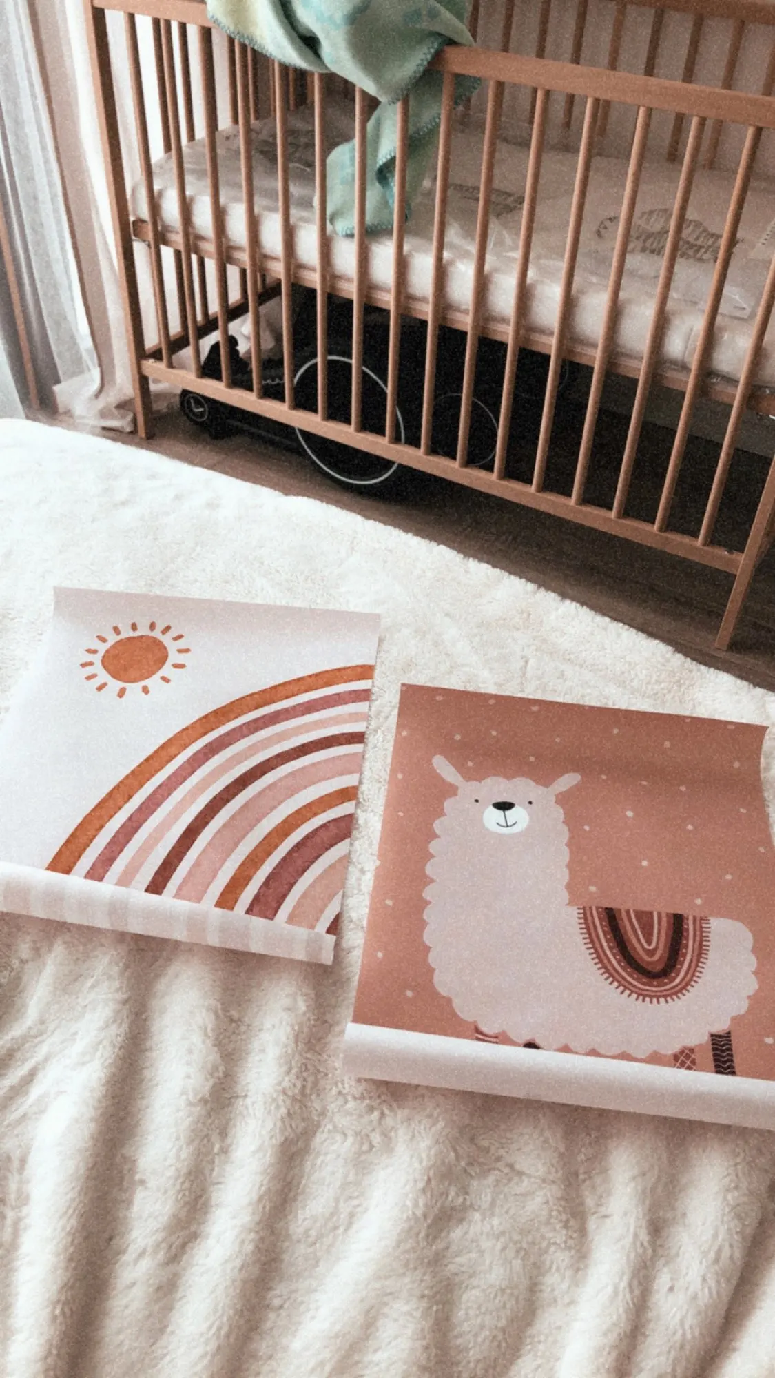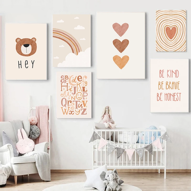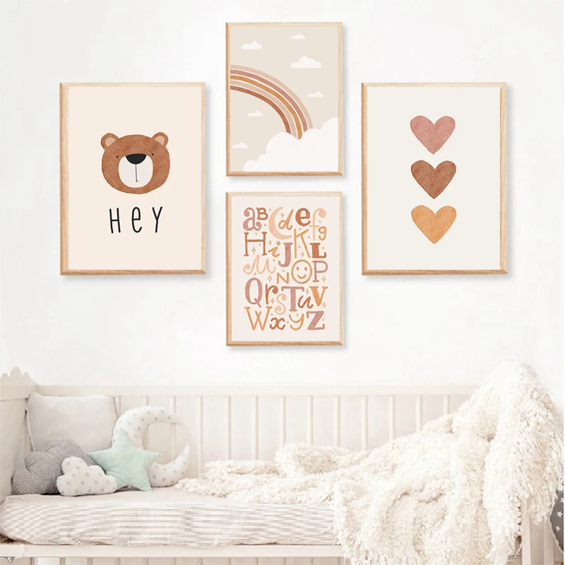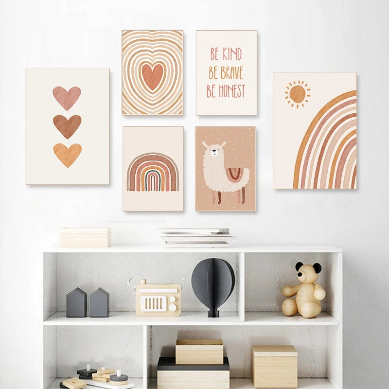 Картина на холсте с изображением солнца, радуги, медведя альпака, скандинавские плакаты и принты, декор для детской комнаты, настенные картины для детской комнаты
