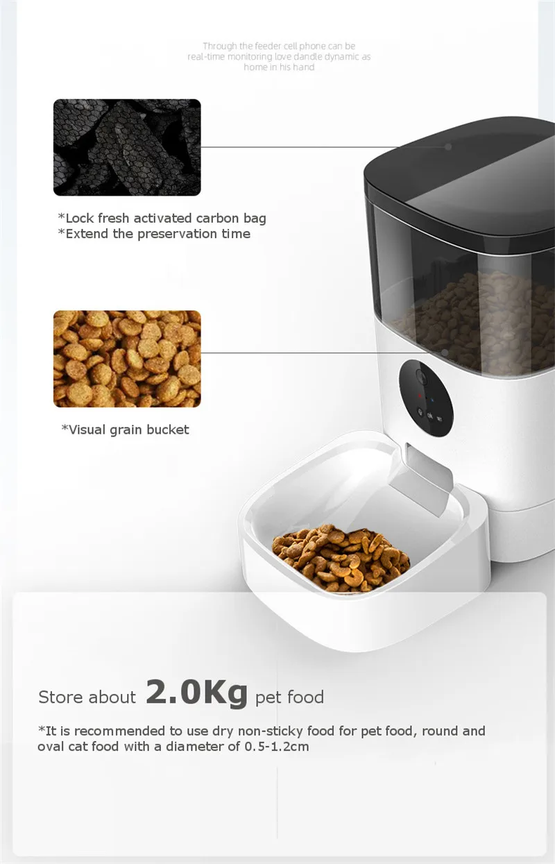 2. Легко установить время еды и количество пищи, которые будут доставлены через мобильный телефон, и регулярно кормить домашних животных более безопасно, чтобы предотвратить полный или голод домашних животных.